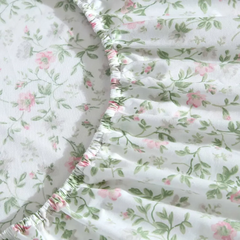 Drift into a restful night's sleep with the Laura Ashley cotton percale printed hem sheet set, designed for softness, breathability, and timeless charm. Crafted from 100% cotton percale, these sheets offer a crisp, lightweight feel for year-round comfort. The delicately printed hem detail adds a touch of elegance, making this set a perfect addition to any bedroom. The twin and full set includes one fitted sheet, one flat sheet and one standard pillowcase, while the queen set includes two standard pillowcases, and the king set includes two king size pillowcases. Machine washable for effortless care.