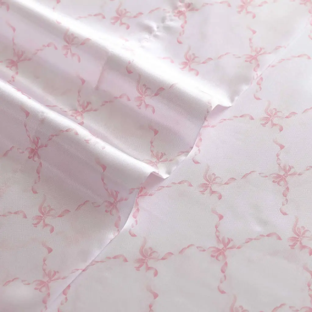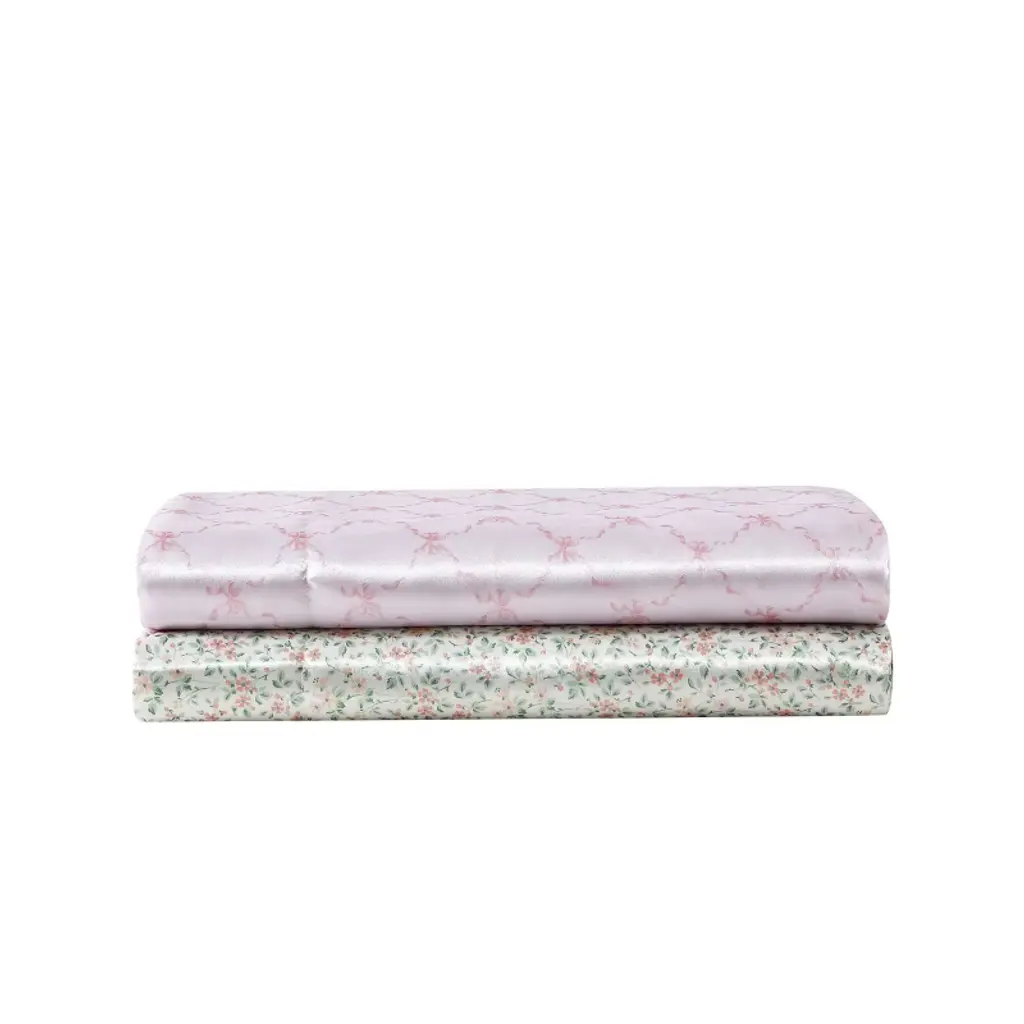 Experience the perfect blend of shine and softness with Laura Ashley's satin sheet sets. The smooth, lightweight fabric drapes beautifully and adds a touch of glamour to nay bedroom. Designed with deep pockets for a secure fit and long-lasting comfort, these printed satin sheets are a dreamy addition to your bedding collection. Each queen and king set includes one fitted sheet, one flat sheet, and two pillowcases. Machine washable for effortless care