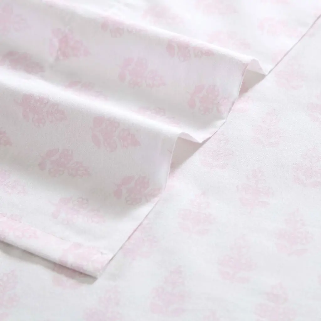 Introducing the Laura Ashley Washed Percale cotton sheets – an exquisite blend of comfort and durability. Immerse yourself in the soft pink floral Francesca sheets, thoughtfully crafted sheets bring a classic yet vintage feel, giving the pattern romantic and feminine touch. Our premium Washed Percale cotton ensures a luxuriously soft and smooth feel against your skin, creating a haven for restful nights and Blissful Dreams. The fabric undergoes a special washing process to enhance its natural softness, providing a relaxed and inviting feeling every time you slip into bed. Designed with the iconic Laura Ashley touch. All sheet sets are available in a variety of sizes, ensuring a perfect fit for any mattress. The deep pockets and elasticized edges guarantee a secure fit, preventing any annoying slipping or bunching, allowing you to enjoy a consistently smooth sleeping surface. In addition to its aesthetic appeal, these sheets are easy to care for. The durable cotton fabric maintains its quality even after numerous washes, ensuring longevity and continued softness. The set includes a fitted sheet, a flat sheet, and matching pillowcases (one pillowcase in twin), creating a cohesive look for your bed. Transform your bedroom into a coastal sanctuary with the new Laura Ashley Washed Percale sheets, available in multiple designs. Pair with your favorite Laura Ashley comforter, duvet cover or quilt set.