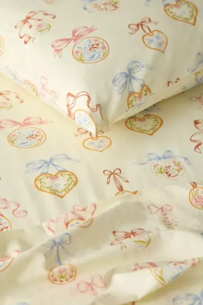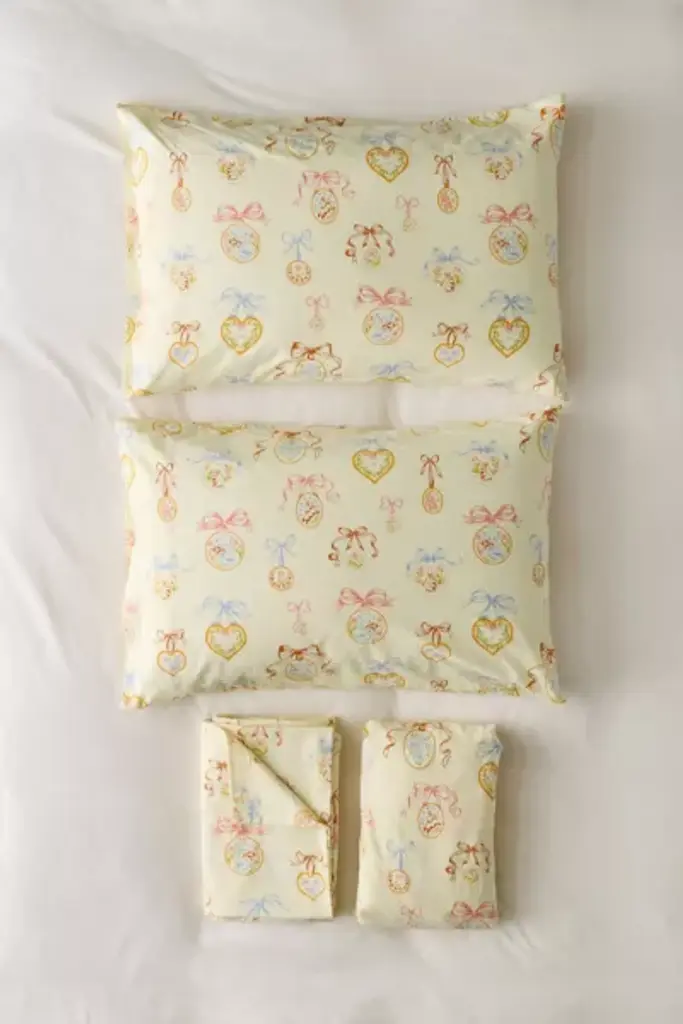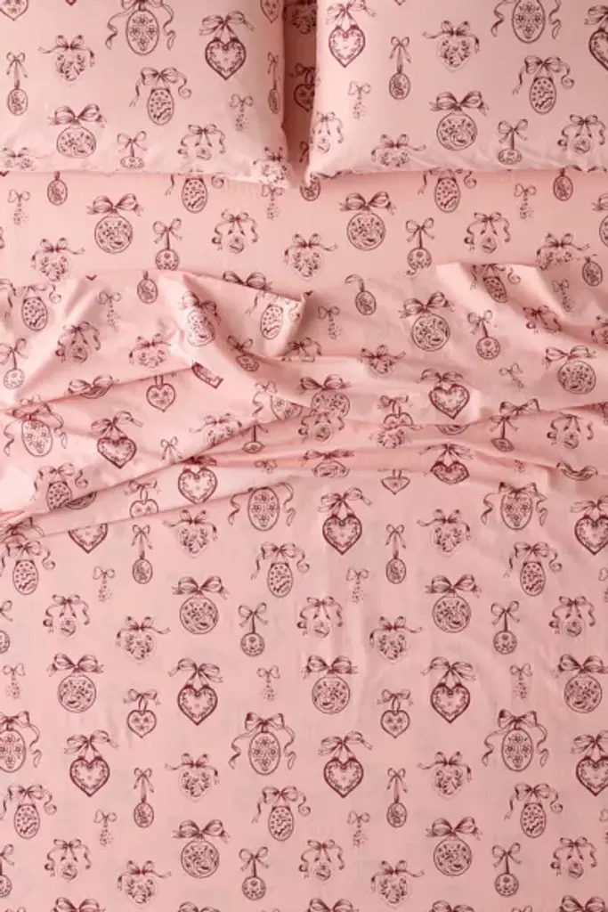 Add a charming layer to your bed with these cotton bed sheets with allover motifs. Made in lightweight, soft cotton that gets softer after each wash, this sheet set features romantic-meets-vintage lockets printed allover. This set comes with everything you need to dress up your bed - a fitted sheet, flat sheet and pillowcases, too! Available exclusively at Urban Outfitters. **Features** \- Locket Patterned Core Sheet Set from UO Home made in our core soft, lightweight cotton \- Lightweight cotton fabrication becomes softer after each wash \- Patterned bed sheet set with assorted lockets printed allover \- Includes all you need to make your bed \- An eco-friendly upgrade, this item is OEKO-TEX® Standard 100 certified free of harsh chemicals \- UO exclusive **Content + Care** \- Pillow inserts sold separately \- Twin XL sheet set includes pillowcase, flat sheet & fitted sheet \- Full, Queen and King sheet sets include 2 pillowcases, flat sheet & fitted sheet \- 100% Cotton \- OEKO-TEX® Standard 100 Certified \- Meets OEKO-TEX® Standard 100 guidelines which independently test each component for harmful substances for textiles you can trust \- Machine wash \- Imported **Size** Twin XL \- Pillowcase dimensions: 20"l x 30"w \- Flat sheet dimensions: 101"l x 66"w \- Fitted sheet dimensions: 80"l x 39"w x 15"h Full \- Pillowcase dimensions: 20"l x 30"w \- Flat sheet dimensions: 96"l x 81"w \- Fitted sheet dimensions: 75"l x 54"w x 15"h Queen \- Pillowcase dimensions: 20"l x 30"w \- Flat sheet dimensions: 102"l x 90"w \- Fitted sheet dimensions: 60"l x 80"w x 15"h King \- Pillowcase dimensions: 20"l x 36"w \- Flat sheet dimensions: 102"l x 108"w \- Fitted sheet dimensions: 78"l x 80"w x 15"h