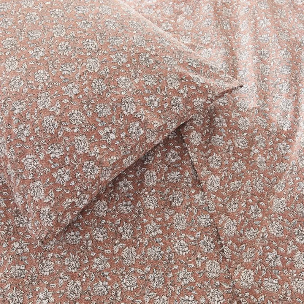 Lush Décor Twin 3Pc Zara Floral Block Cotton Sheet Set Terracotta