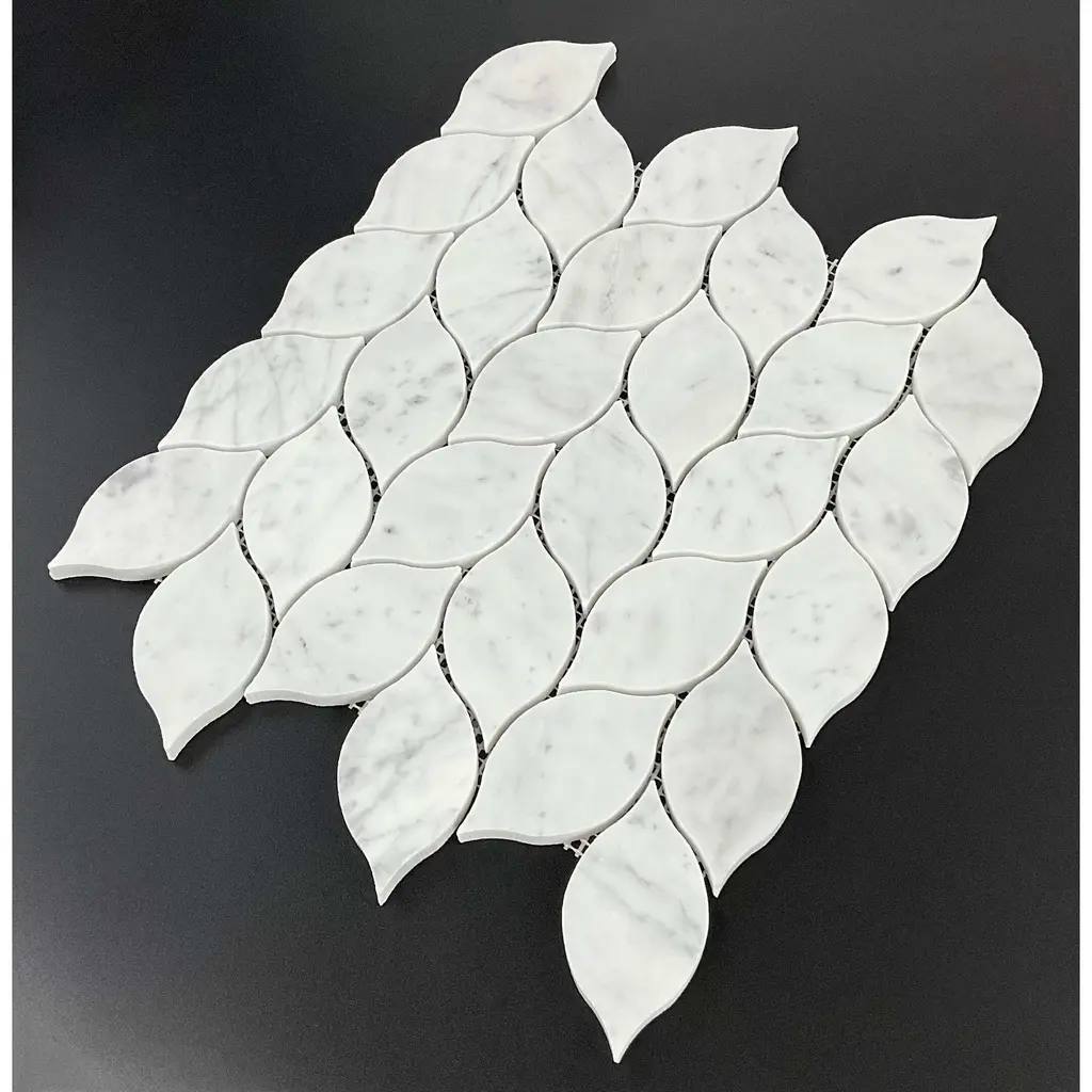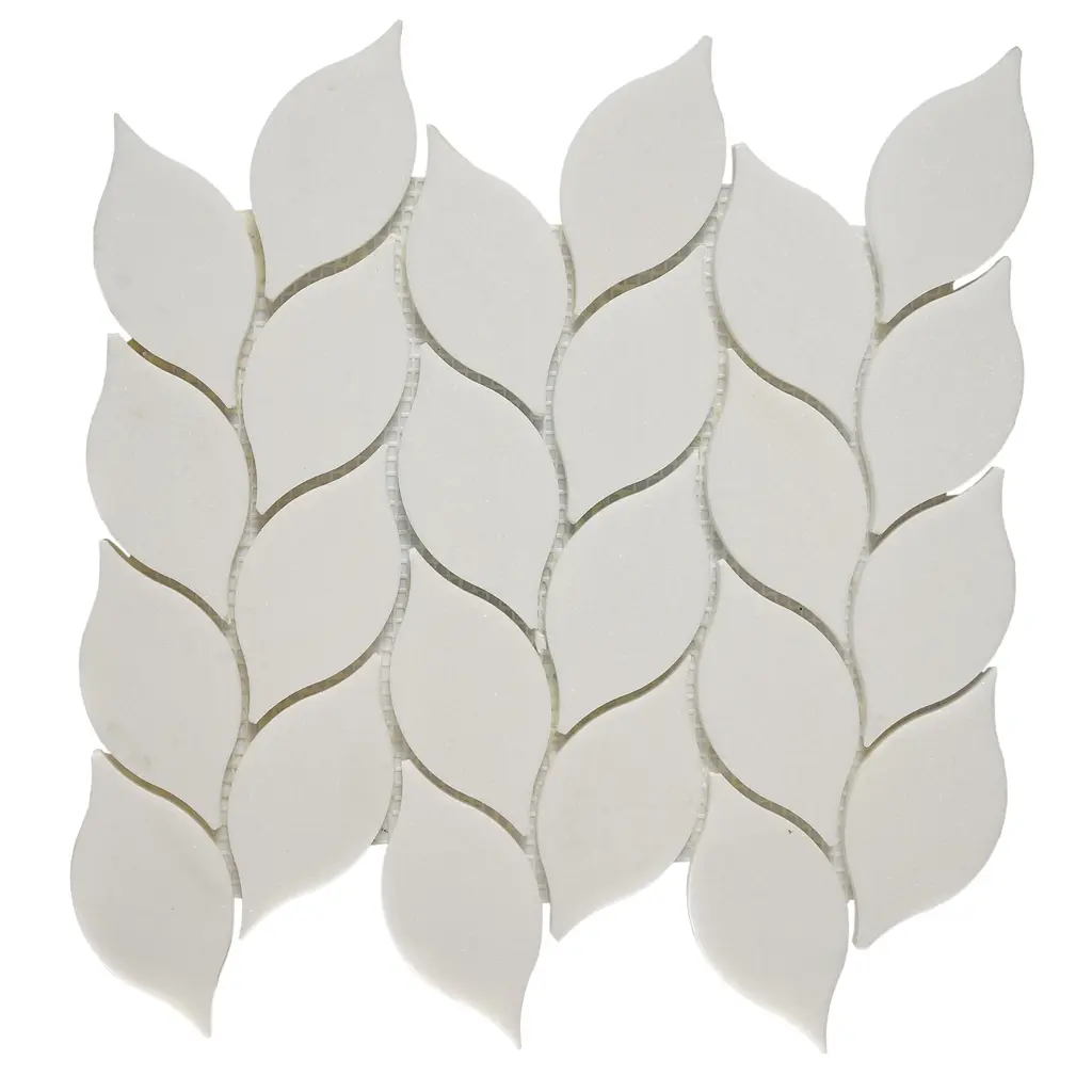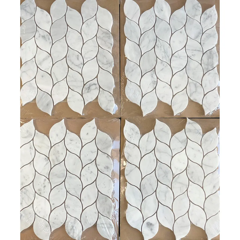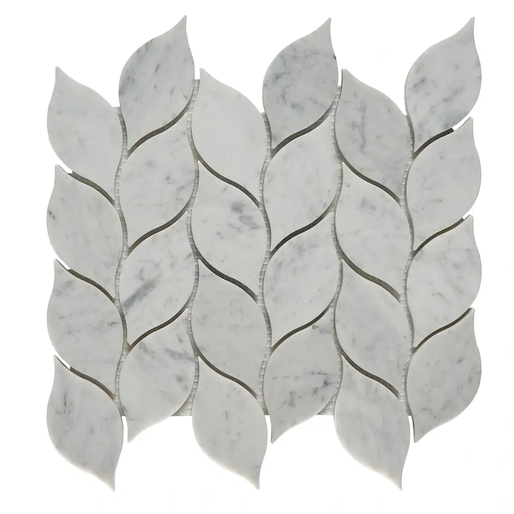 Marble Leaf Pattern Wall & Floor Mosaic Tiles - Case (10 Sheets) - White Carrara