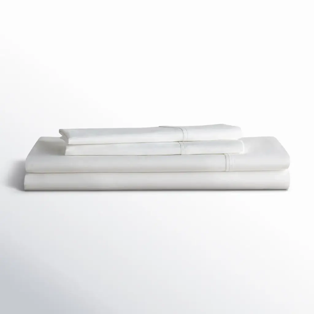 The classic feel of cotton and the easy-care convenience of polyester come together to create this essential cotton-blend sheet set. This temperature-regulating fabric has a 600 thread count and is designed to wick away moisture to help keep you comfortable in every season. This set includes a fitted sheet, a flat sheet, and two pillowcases (one for twin size). The solid hue is easy to pair with an existing duvet and the understated color options pair well with both vibrant and neutral palettes. Just between us: It's wrinkle-resistant, so it's a great choice for the guest bedroom.