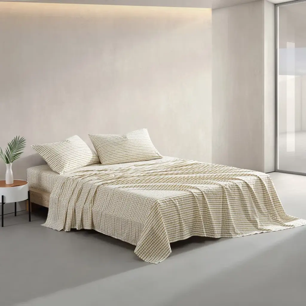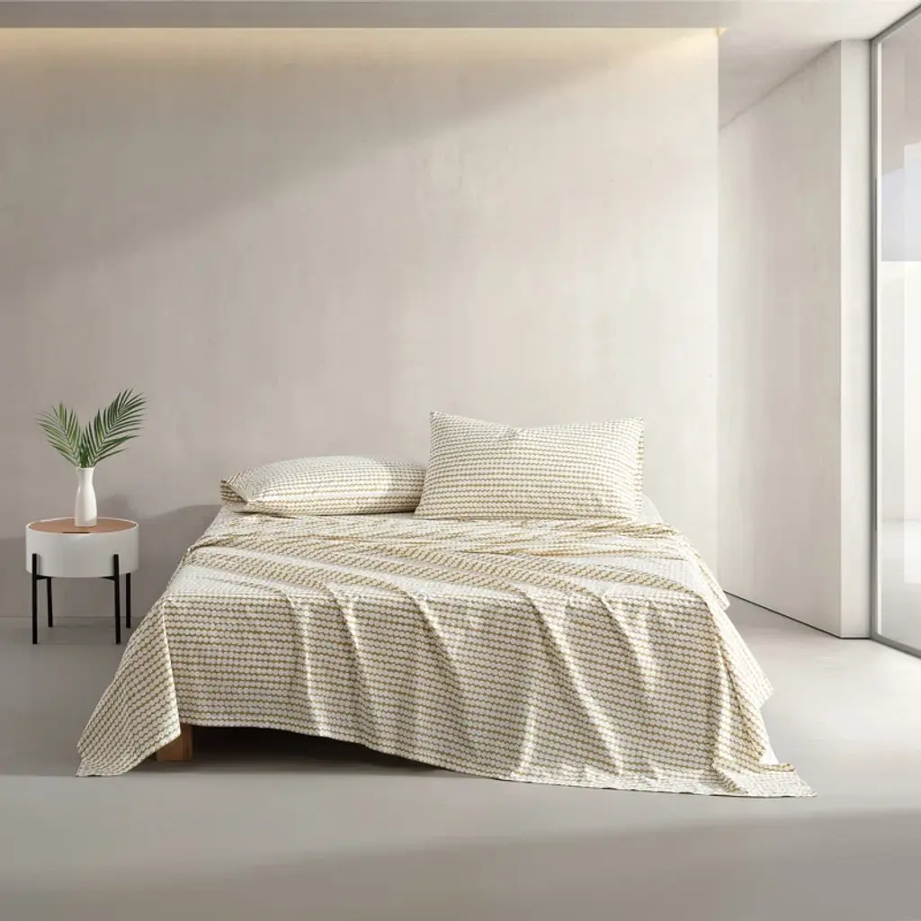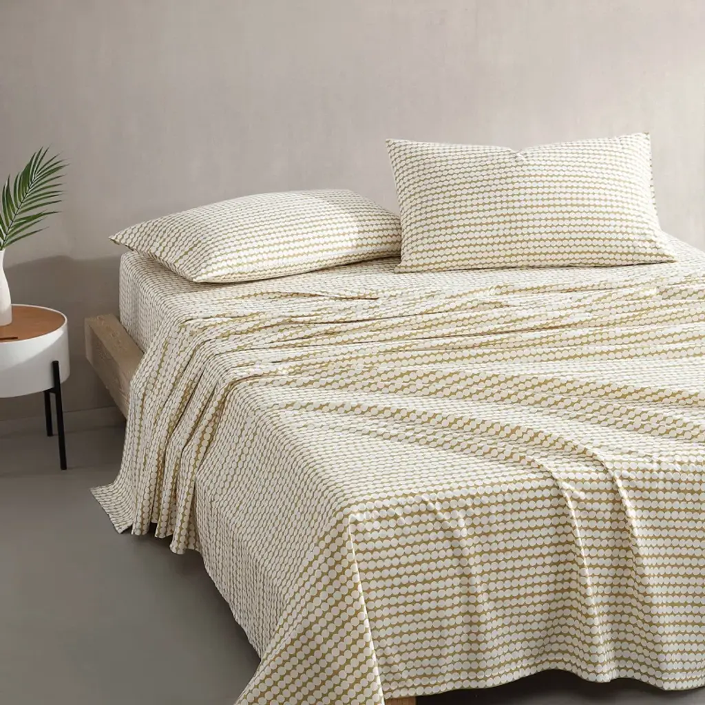 Brighten up your space with one of Marimekko's bold, signature prints. The sheet sets are crafted with premium organic cotton fibers, this product is not only sustainable but ethically manufactured. The sheets have a soft and lustrous hand feel, creating luxury in your home. This sheet set is Oeko-Tex and GOTS certified which ensures the textiles meet high safety and environmental standards. Pair with any Marimekko printed duvet set to make a vibrant and iconic statement in your home. The set includes 1 fitted sheet , 1 flat sheet and 2 pillowcases. The ensemble is machine washable for easy care.