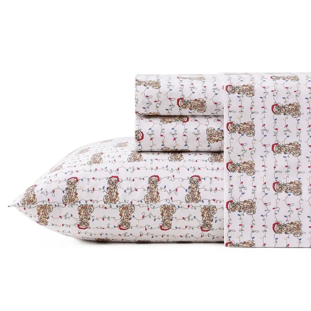 Martha Stewart Full Holiday Pups Sheet Set Brown