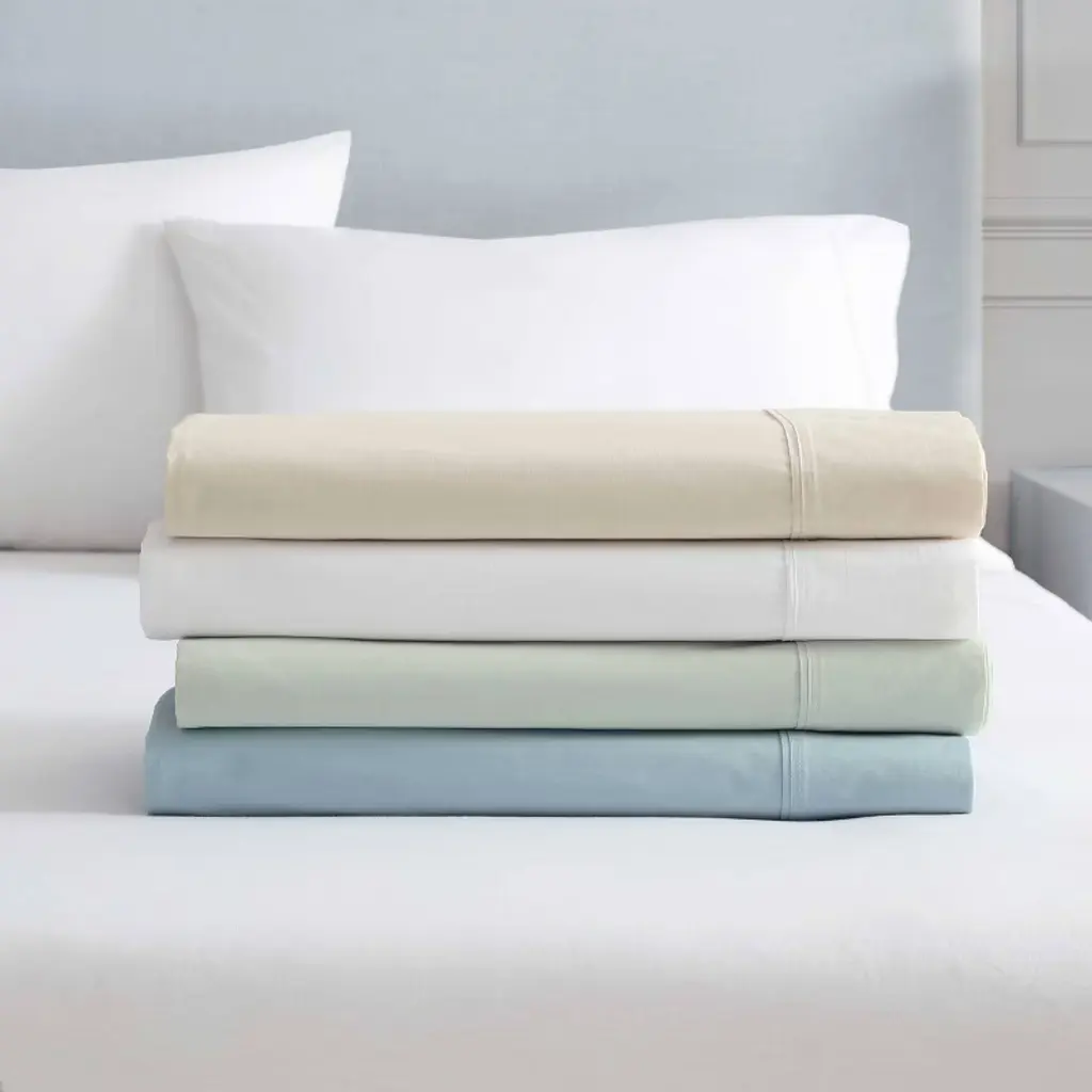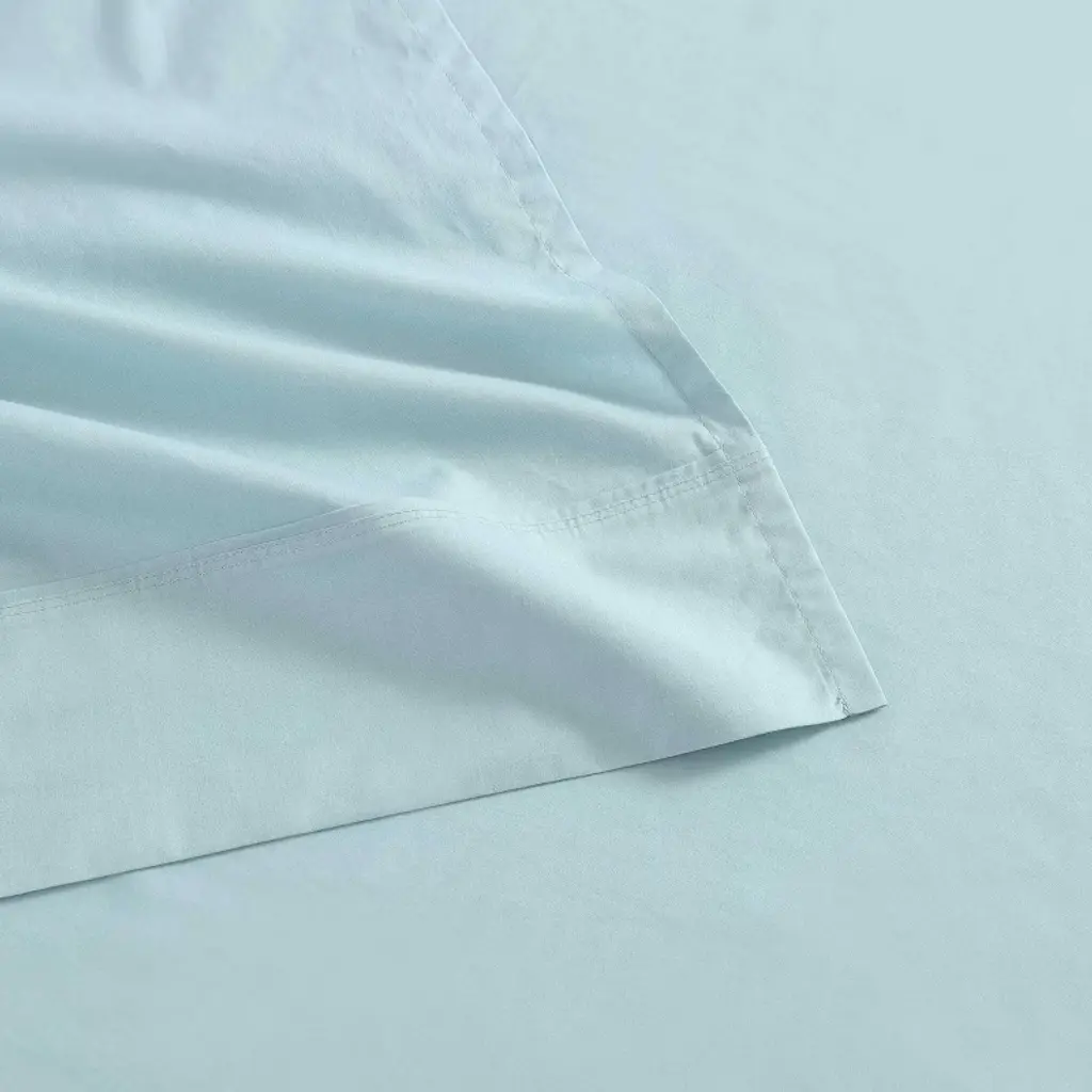 Bring a touch of classic charm to your bedroom with the Skylands collection by Martha Stewart Cotton Sheet Set. Featuring a timeless solid soft blue, this set offers a fresh, tailored look that complements both traditional and modern décor. Crafted from 100% breathable Cotton, these sheets are Soft, durable, and designed for year-round comfort. Martha’s signature, attention to detail is evident in the crisp weave and beautifully finished hems, ensuring a polished yet inviting feel. Whether layered with Solids or paired with complementary prints, this Sheet Set creates a warm, welcoming retreat that’s effortlessly stylish.