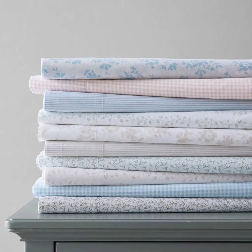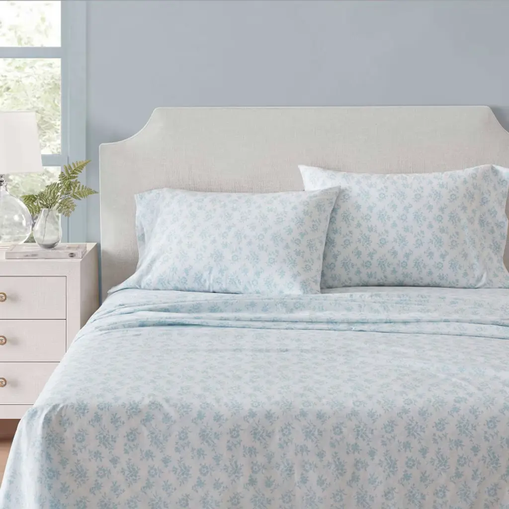 Bring a touch of classic charm to your bedroom with the Martha Stewart cotton sheet set. Each sheet set features a timeless floral pattern, this set offers a fresh, tailored look that complements both traditional and modern décor. Crafted from 100% breathable cotton, these sheets are soft, durable, and designed for year-round comfort. Martha’s signature, attention to detail is evident in the crisp weave and beautifully finished hems, ensuring a polished yet inviting feel. Whether layered with solids or paired with complementary prints, this sheet set creates a warm, welcoming retreat that’s effortlessly stylish.
