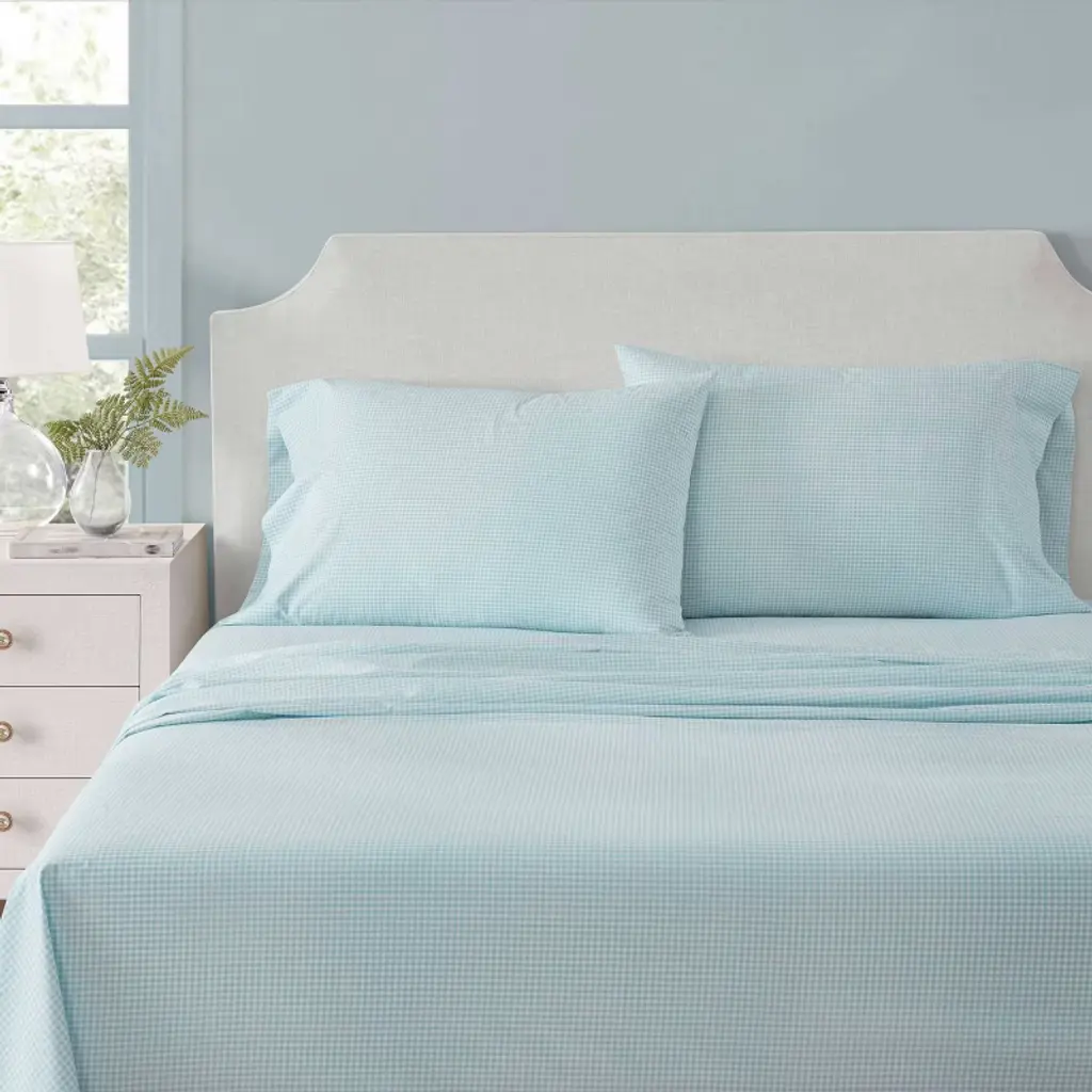 Martha Stewart Queen Ms Core Small Gingham Sheet Set Blue