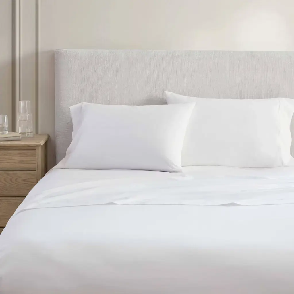Bring a touch of classic charm to your bedroom with the Skylands collection by Martha Stewart Cotton Sheet Set. Featuring a timeless solid clean white, this set offers a fresh, tailored look that complements both traditional and modern décor. Crafted from 100% breathable Cotton, these sheets are Soft, durable, and designed for year-round comfort. Martha’s signature, attention to detail is evident in the crisp weave and beautifully finished hems, ensuring a polished yet inviting feel. Whether layered with Solids or paired with complementary prints, this Sheet Set creates a warm, welcoming retreat that’s effortlessly stylish.