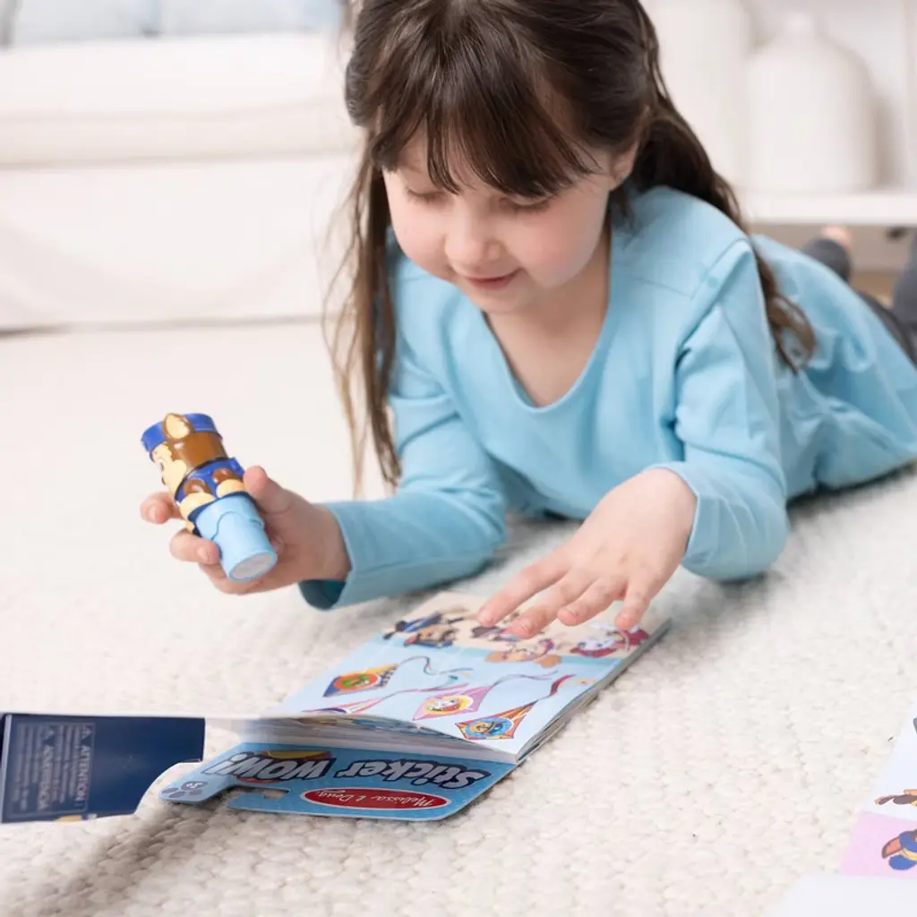 Melissa & Doug Sticker WOW!™ is a whole new way to play with stickers! Let the adorable, collectible Chase the PAW Patrol pup stamp, stamp, stamp its way through 24 pages of fun-filled, PAW Patrol-themed counting, matching, and search-and-find activities. The refillable sticker stamper comes pre-loaded with a sticker stack of 300 assorted stickers – with 100 unique designs in every stack, each sticker is a surprise! Plus, this set is bundled with a refill pack of 200 EXTRA PAW Patrol-themed stickers (compatible with any Sticker WOW!™ sticker stamper) and an additional mini PAW Patrol-themed activity pad for even more Sticker WOW!™ fun. Stickers are not reusable, but are easy to remove if necessary. Fill in the activity pages and use for creative art projects, such as bookmarks, posters, cards, and more. Easy-to-remove stickers and the convenient on-the-go format with built-in sticker stamper storage makes Sticker WOW!™ a great mess-free travel activity. Sticker WOW!™ (patent pending) promotes fine motor skills, encourages creative play, and it’s satisfying, fidget fun!