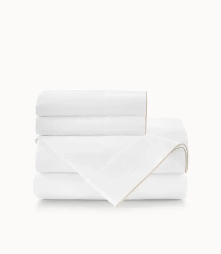 With just a touch of added color, our Melody Embroidered Sateen Sheets are trimmed with a thin line of stitching in a color of your choosing. This minimalist touch is added to our best-selling Soprano sheets.