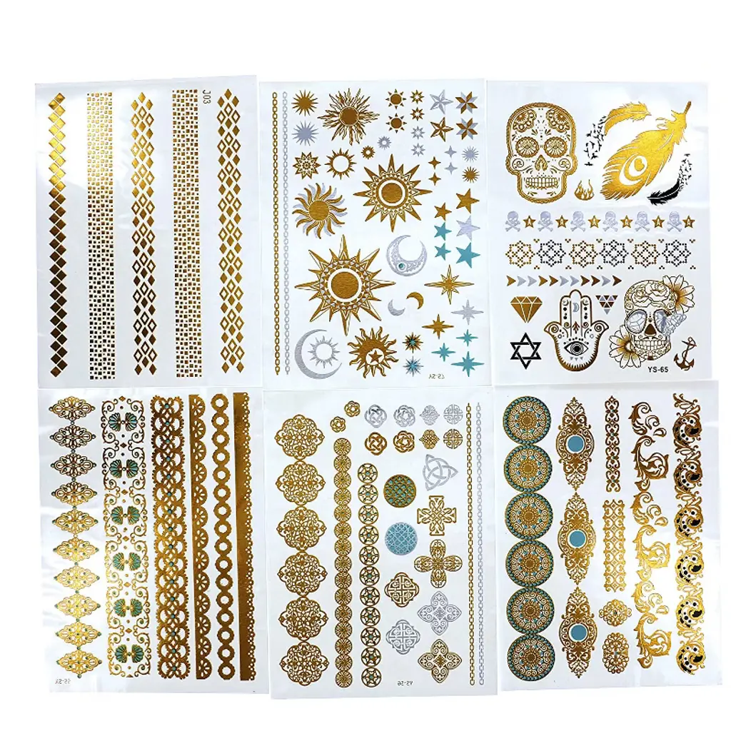 Metallic Temporary Tattoos - Six Sheets of Gold and Silver Bohemian Henna Tattoo (Series 2)