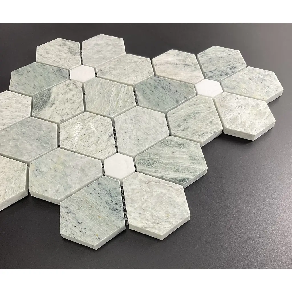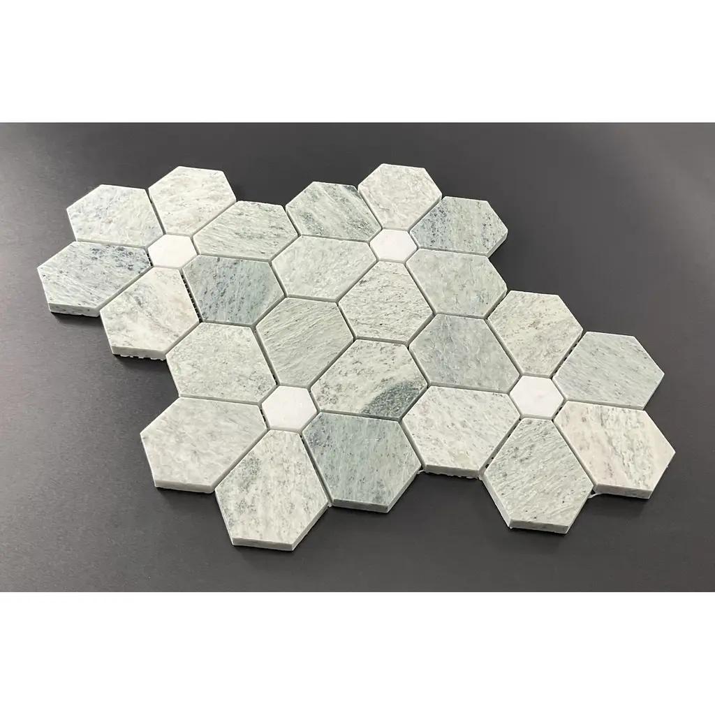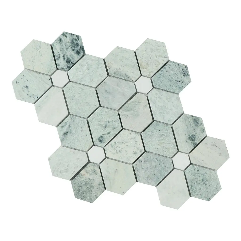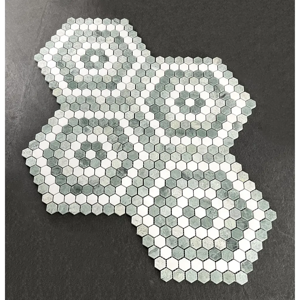 Ming Green And Thassos White Flowers Pattern Marble Mosaic - Case (10 Sheets) - Case (10 Sheets) - Ming Green And Thassos White