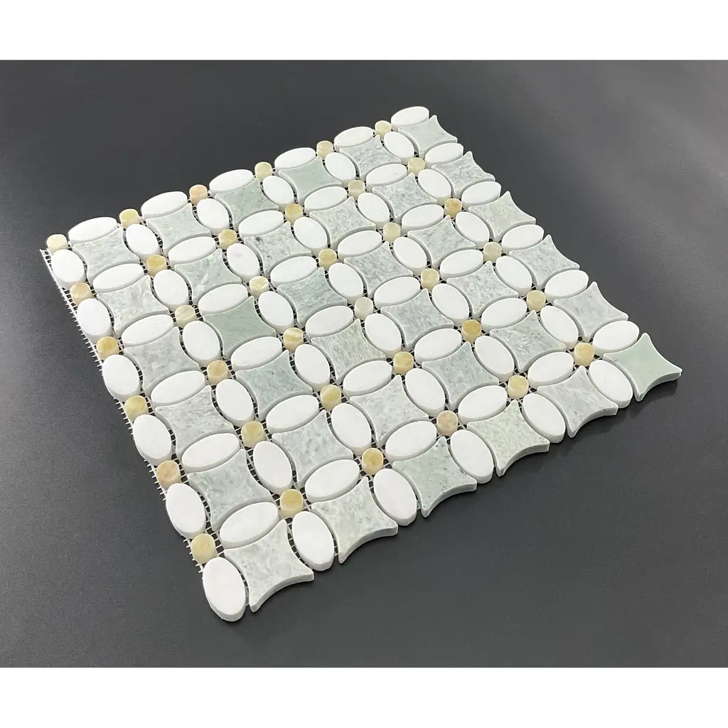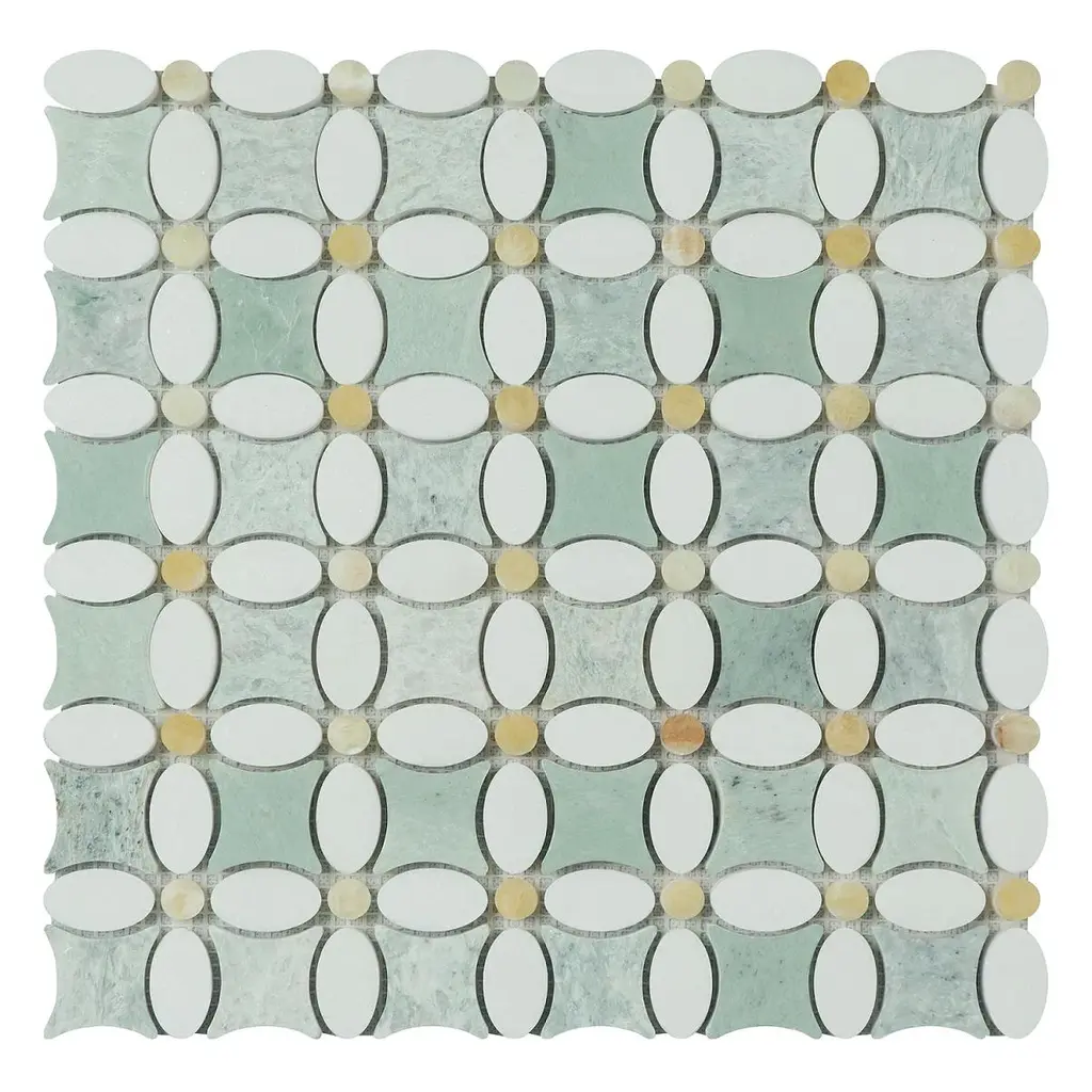 Ming Green Marble Novelty Mosaic Wall & Floor Tile - Case (10 Sheets) - Case (10 Sheets) - Ming Green Thassos White And Honey Onyx