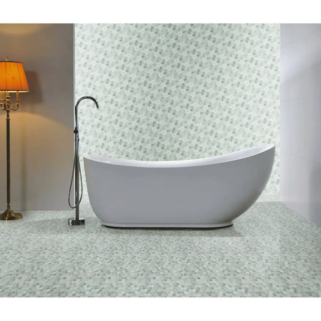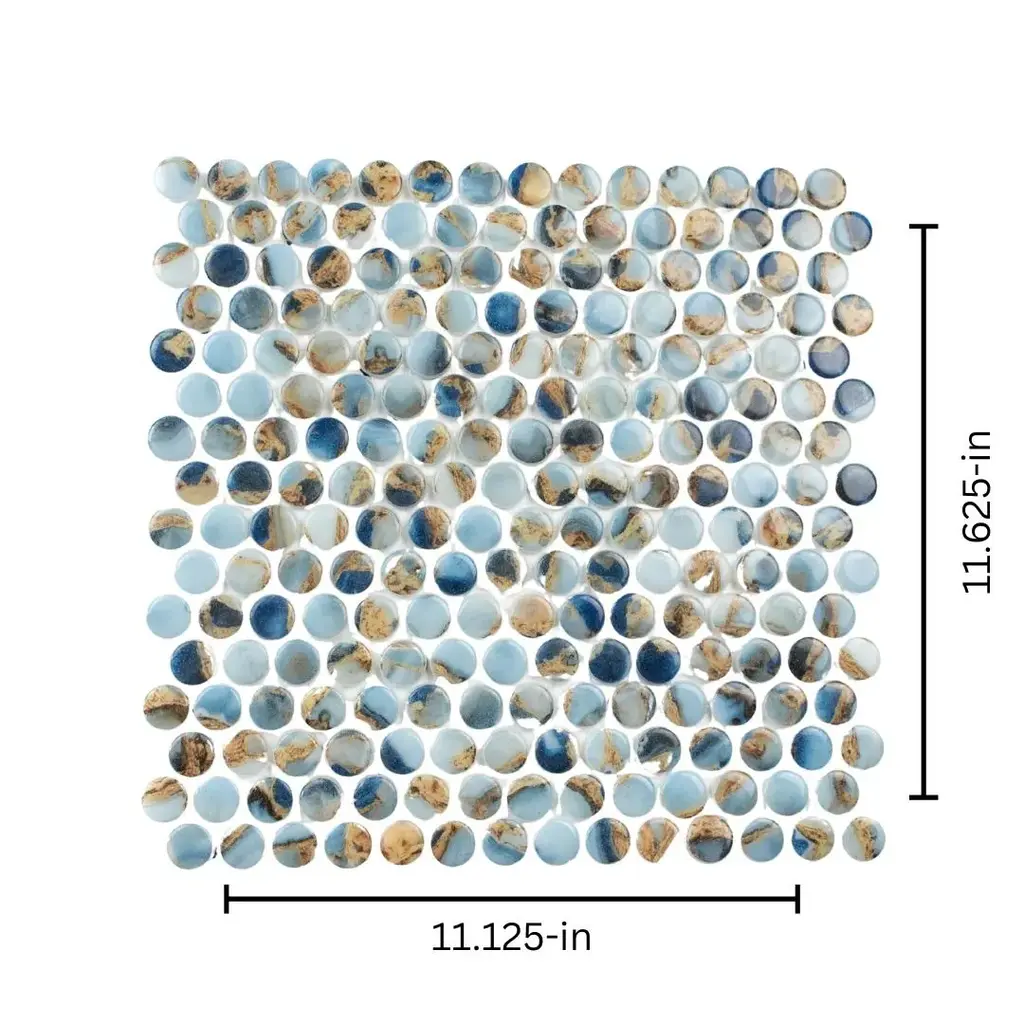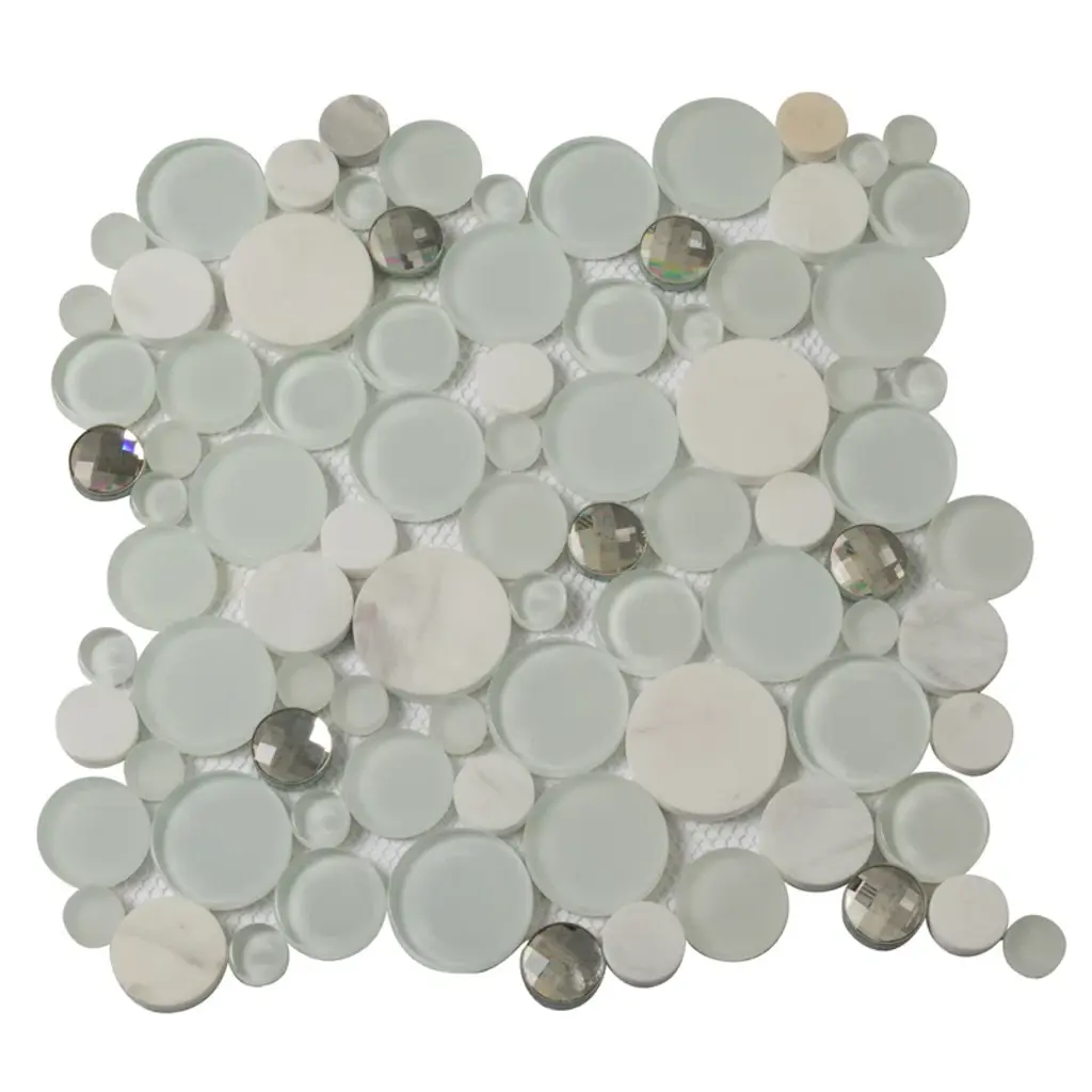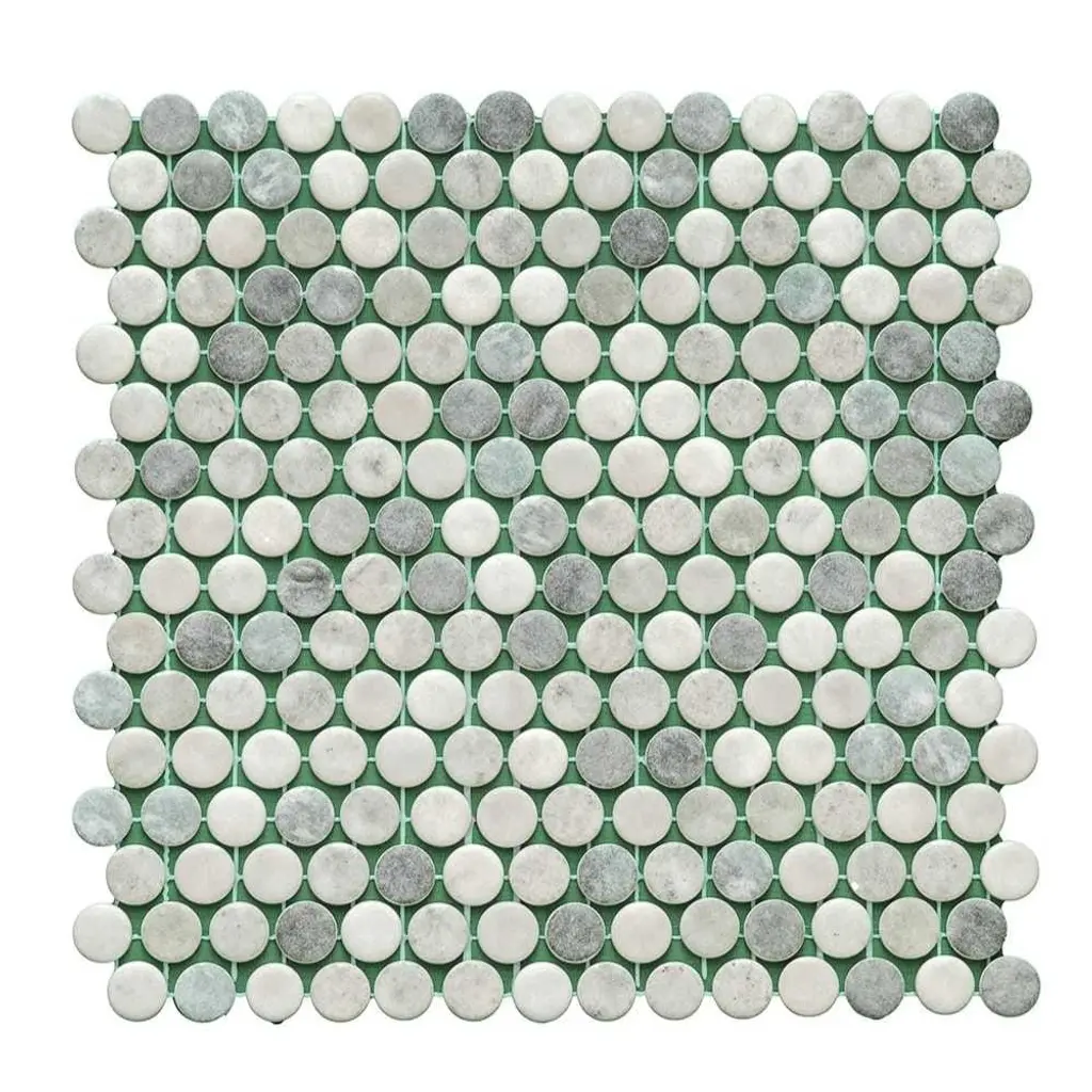 Color: Ming Green Material: Natural Marble Overall Product Weight: 3.4 lb. Dimensions Mosaic Sheet: 12.5" W X 12'' L Individual Tile:3/4" Round Finish: Polished Overall Thickness: 0.32 Surface Area per Carton: 10 SqFt It is mesh-mounted for easy installation. Installation Area: Kitchen Backsplash, Fireplace Front, Bathroom Wall, Shower Wall
