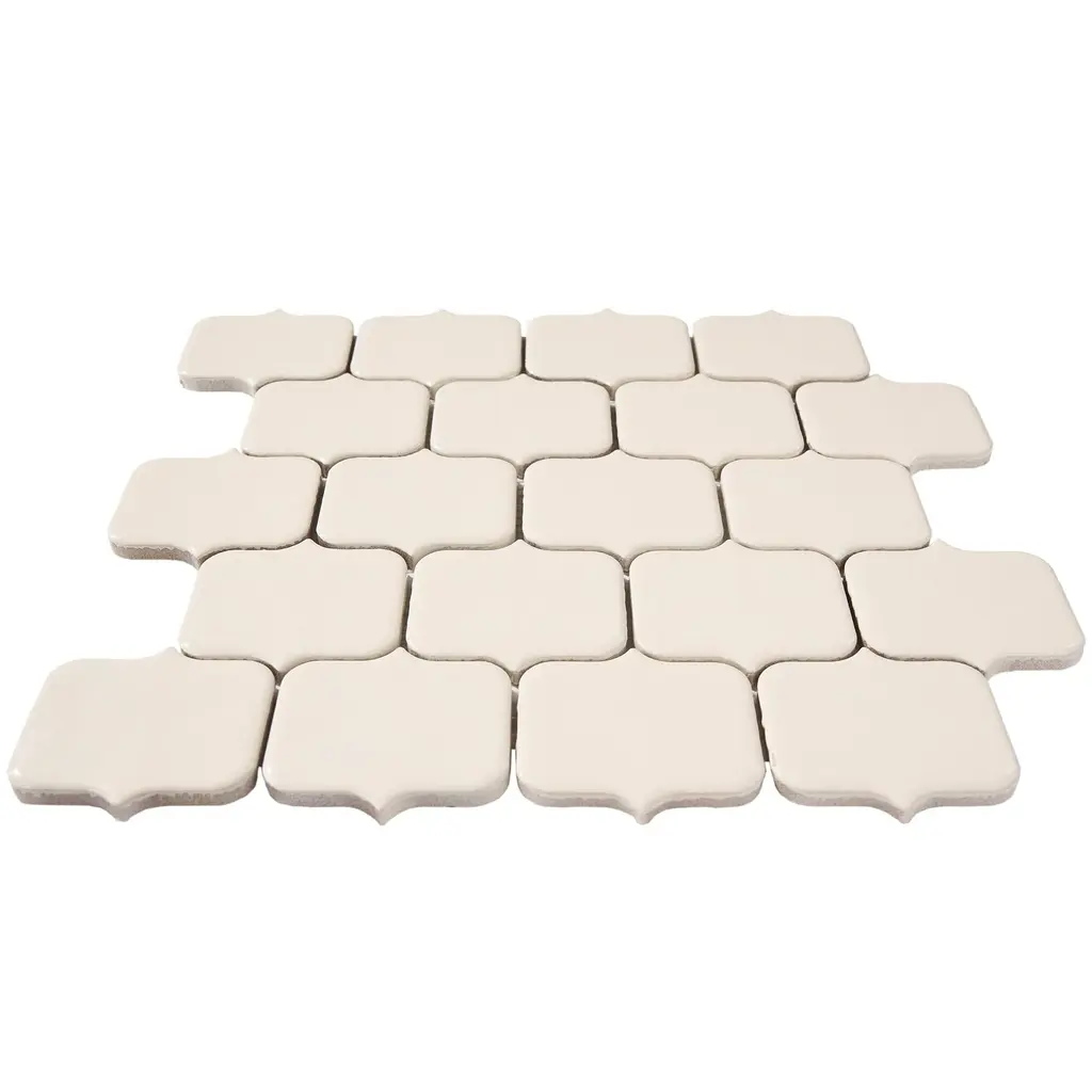 Transform your home into a magnificent space with our high-quality Modern Arabesque Glossy Porcelain Mosaic Tile. This premium mosaic tile features a modern lantern design that creates beautiful layouts and designs when mixed and matched with other colors. Made from durable porcelain, this tile is low-maintenance and easy to clean, making your life much easier. With its elegant look, it is perfect for adding a touch of style to your living room, kitchen, or bathroom.Features:Product Details: