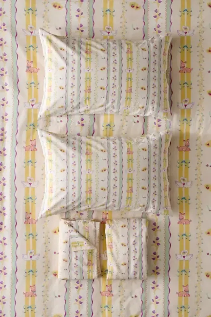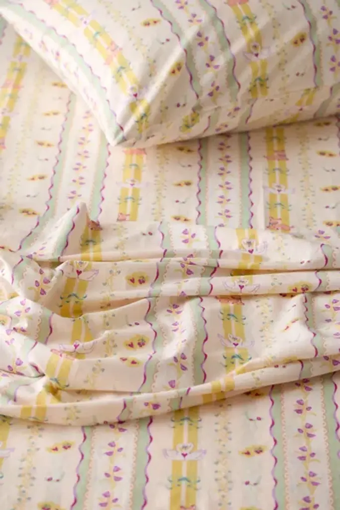 Add a vintage layer to your bedding with these floral bed sheets featuring an allover striped motif with flowers strewn throughout. These striped floral bed sheets come with everything you need to dress up your bed - a fitted sheet, flat sheet and pillowcases, too! Pair these floral bed sheets with other Molly Floral Stripe bedding favorites for a coordinated bedding set. Available exclusively at Urban Outfitters. **Features** \- Molly Floral Stripe Sheet Set from UO Home made in our core cotton fabrication \- Core cotton fabrication gets softer after each wash \- Finished with stripes and floral motifs allover \- Includes all you need to make your bed: a flat sheet, fitted sheet and pillowcases \- An eco-friendly upgrade, this item is OEKO-TEX® Standard 100 certified free of harsh chemicals \- UO exclusive **Content + Care** \- Pillow inserts sold separately \- Twin XL sheet set includes pillowcase, flat sheet and fitted sheet \- Full, Queen and King sheet sets include 2 pillowcases, flat sheet and fitted sheet \- 100% Cotton \- OEKO-TEX® Standard 100 Certified \- Meets OEKO-TEX® Standard 100 guidelines which independently test each component for harmful substances for textiles you can trust \- Machine wash \- Imported **Size** Twin XL \- Pillowcase dimensions: 20"l x 30"w \- Flat sheet dimensions: 101"l x 66"w \- Fitted sheet dimensions: 80"l x 39"w x 15"h Full \- Pillowcase dimensions: 20"l x 30"w \- Flat sheet dimensions: 96"l x 81"w \- Fitted sheet dimensions: 75"l x 54"w x 15"h Queen \- Pillowcase dimensions: 20"l x 30"w \- Flat sheet dimensions: 102"l x 90"w \- Fitted sheet dimensions: 60"l x 80"w x 15"h King \- Pillowcase dimensions: 20"l x 36"w \- Flat sheet dimensions: 102"l x 108"w \- Fitted sheet dimensions: 78"l x 80"w x 15"h