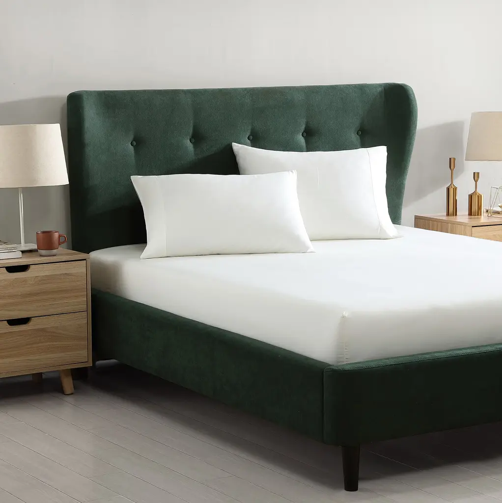 Two pillowcases, a fitted bed sheet and a top sheet made of viscose from bamboo. Sustainable, breathable, antibacterial, and oh so silky-soft. What's included? 1 fitted sheet 2 pillowcases 1 top sheet