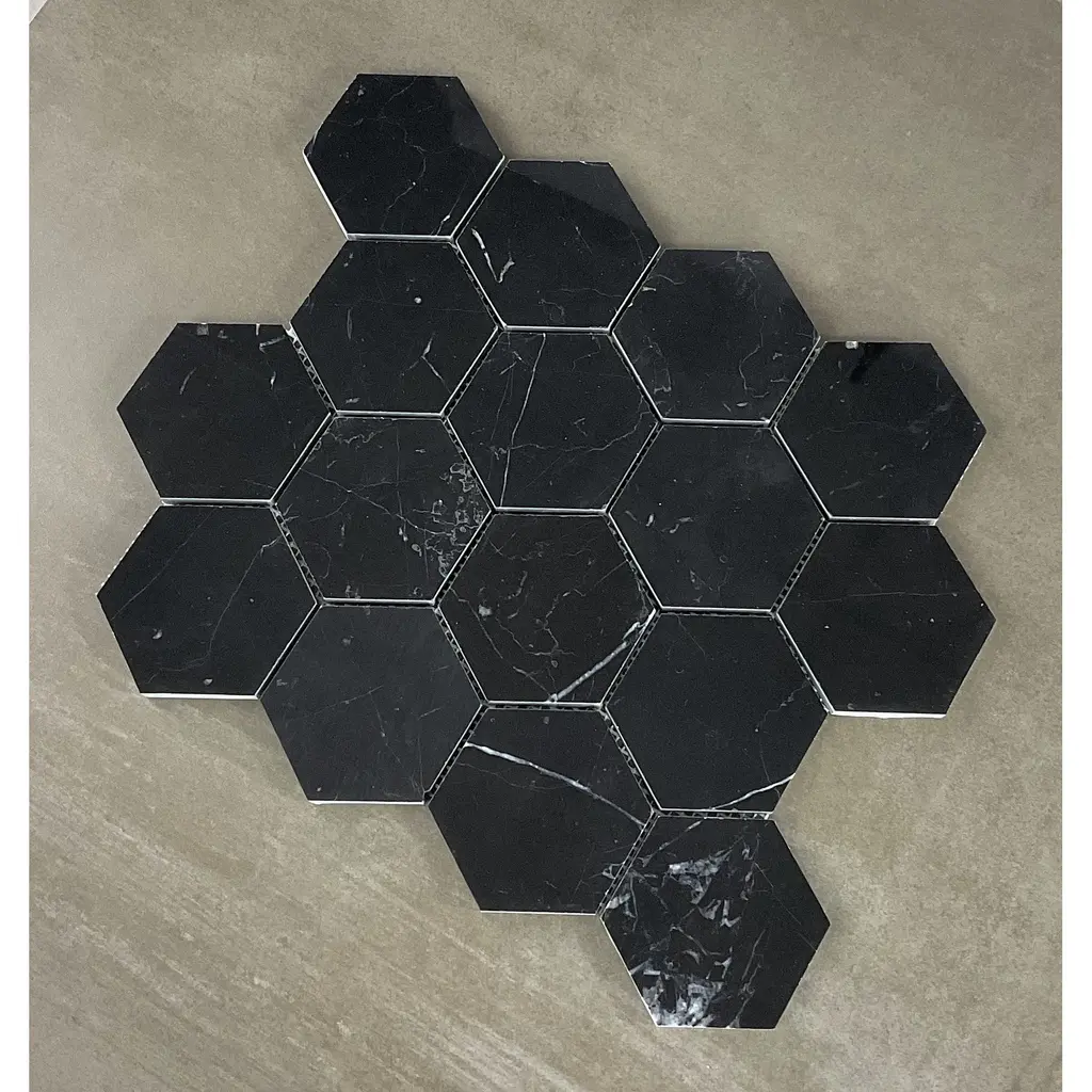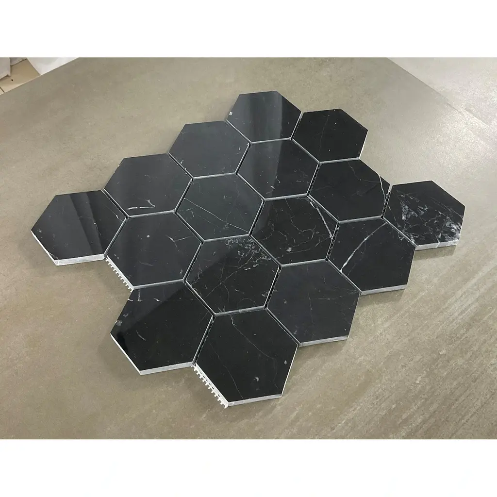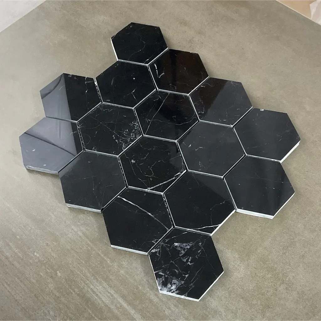 Nero Marquina 3" Hexagon Marble Wall And Floor Mosaic - Case (10 Sheets) - Case (10 Sheets) - Nero Marquina