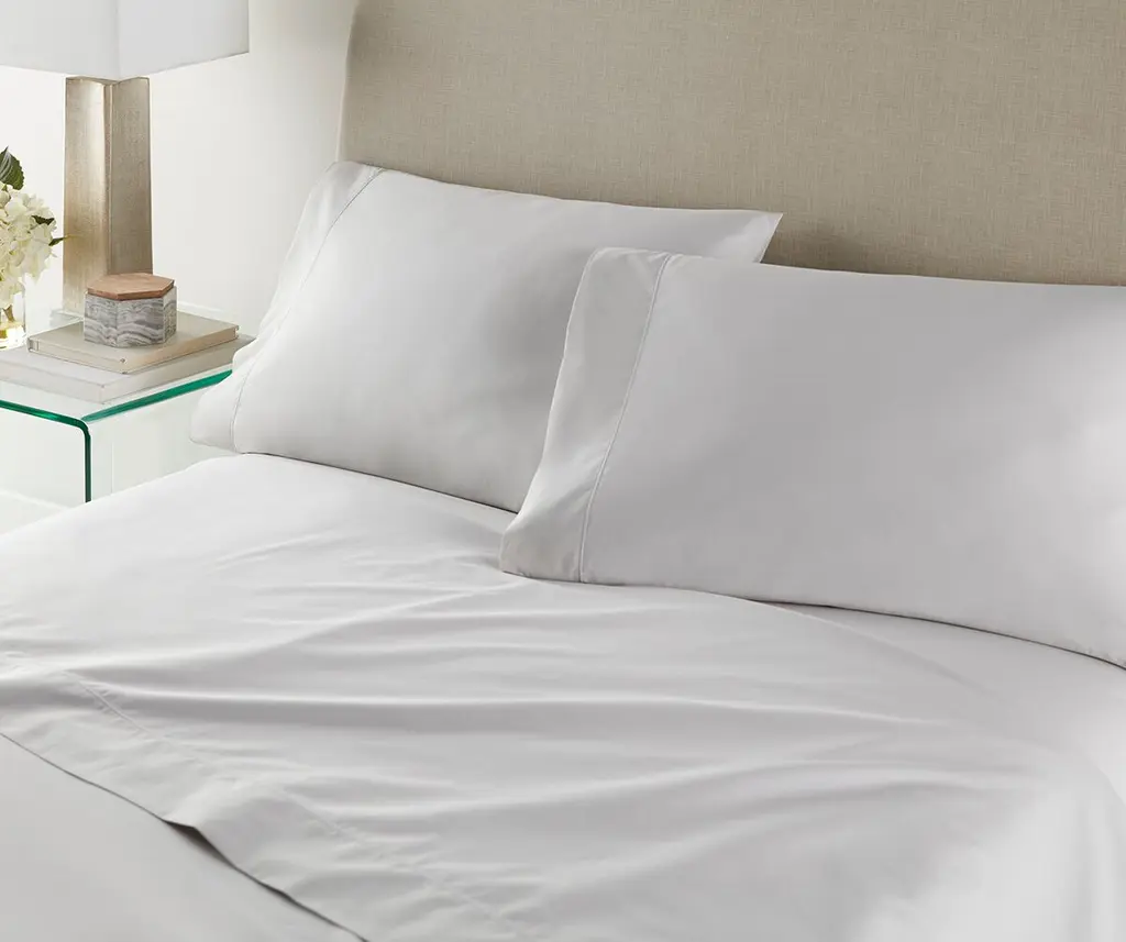 Crafted from the finest certified 100% Egyptian cotton percale, our Nile sheeting is designed to be a staple in your home. Sheets that are luxuriously soft right out of the package, cool to the touch and create an easy, sophisticated look. Available in a flat sheets, fitted sheets, pillowcases and as a sheet set. 100% Egyptian Cotton 300 Thread count percale sheeting Antimicrobial finish Flat sheet features a corded detail at the hem - has a 4" cuff Made in Portugal