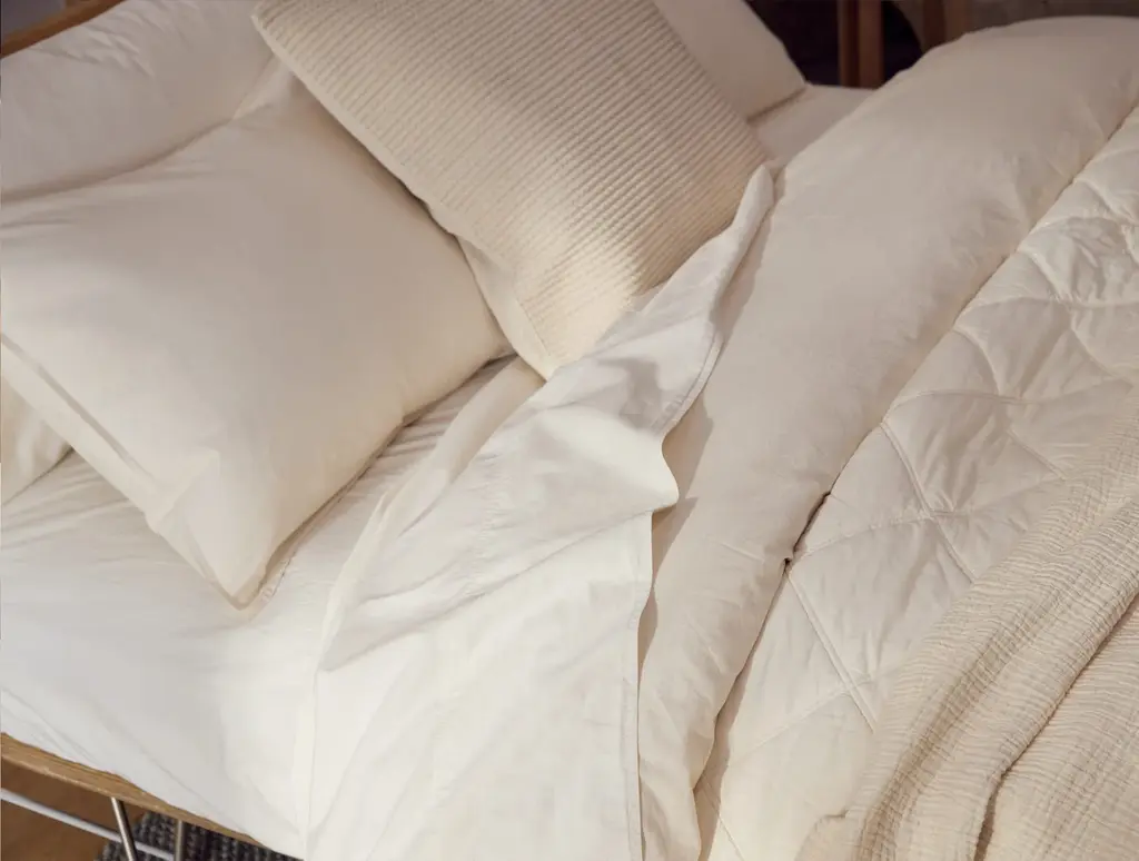 Featured on Apartment Therapy's Best Organic Bedding List Our Organic Crinkled Percale™ Sheet Set is crafted with 100% GOTS Certified organic cotton that’s gentle on skin. Ultra lightweight and cool to the touch, it's perfect for warm sleepers and seasons, offering a breathable, restorative rest. These washed cotton sheets feature a naturally crinkled texture, giving them a casual, carefree and naturally lived-in look, ideal for any bedroom.
