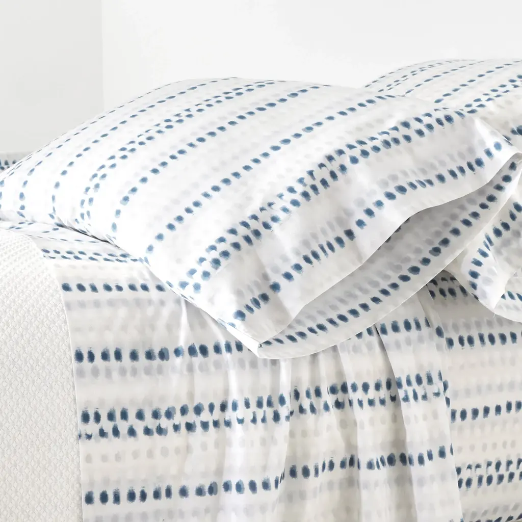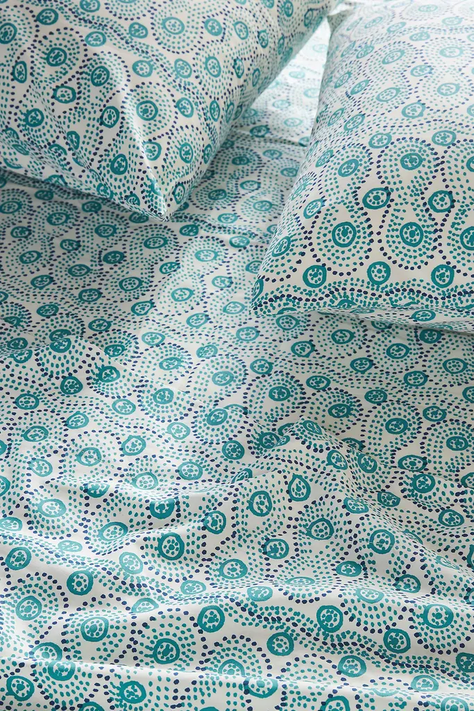 Hallmarked by a lustrous sheen and oh-so-silky feel, this organic sateen sheet set invites pattern and poise into your bedroom retreat. Offering a sumptuously soft foundation and luxurious drape, it's ready to be layered, loved, and lived in during any season. Ainsleigh: Intricate florals and birds invite an air of romance. Elian: Sweeping patterns of delicate paisley invite a retro feel. Faris: Galloping horses go-round merrily amongst the stars. Foraged: A soothing mint hue serves as a backdrop for weeping willows and leaping fawns. Gia: A peaceful medley of delicate leaves sways in the wind. Holly: Vibrant blooms and verdant greens abound with springtime freshness. Jylin: Swirls of rich botanicals invite in the wonders of nature. Lynsey: Dotted detail offers a modern update to a classic paisley print. Maisie: Luxurious botanicals evoke a visual serenity. Tito: A dainty dog dances across a soothing, watercolor blue. Looking for the sweetest of dreams? Read our guide to find the perfect bedding for you, and learn how to care for it season after season.
