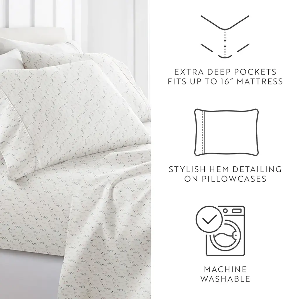 Our double-brushed patterned microfiber sheet set is super soft to the touch and wrinkle-resistant. We use premium yarns that are twice as durable as cotton, which means less risk of rips and wear. Naturally hypoallergenic, our sheets are ideal for sensitive skin and those with allergies. Available in a variety of unique designer prints and patterns, including florals, geometrics, and stripes, making it the perfect new addition to your room!