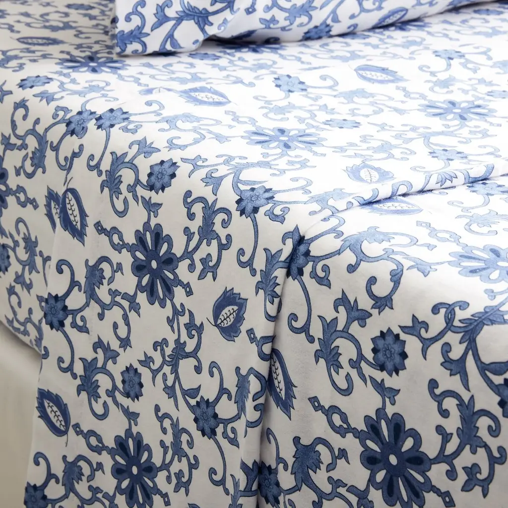 Ideal for keeping cozy in the colder months, this flannel sheet set is made from a blend of soft cotton and Lyocell with a floral paisley pattern. The flannel fabric is brushed four times per side and sulfurized to ensure softness and durability. Fitted sheet fits mattresses up to 18"D.