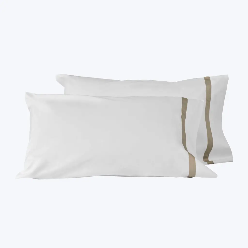 Achieving elegance and class through simplicity is a divine matter that only Pegaso, the mythical winged white stallion, can represent in a unique combination of delicate grace and elegant power. The Pegaso Pillowcases and Flat Sheets feature SUPIMA® cotton, a 100% extra-long staple cotton exclusively grown in the American West that's twice as strong as regular cotton to ensure long-lasting durability. Supima cotton is also inherently softer and more luxurious due to its extra-long stable fibers that produce a smoother, cleaner yarn that resists pilling and only gets softer as time passes. The Pegaso Bedding Collection is sure to only get more brilliant wash after wash. This 400TC Percale Bedding is the perfect match for warm sleepers and the summer months with its lightweight, breathable fibers. The Pegaso Flat Sheet and Pillowcases are made with solid percale with a sateen border for extra shine. Made in Italy.Fitted sheets, pillowcases, and flat sheets sold separately. Pillowcases sold in a pair of two.