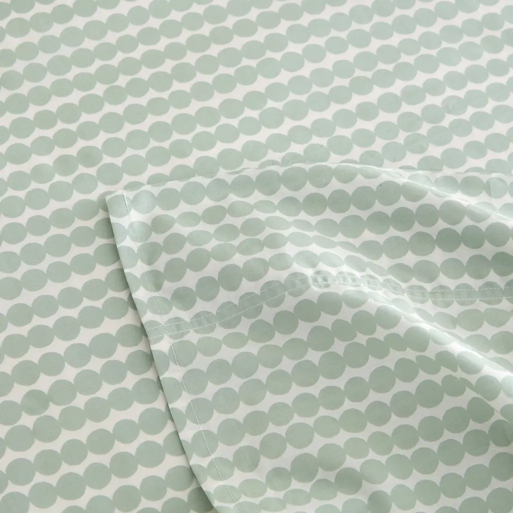 Bring fresh style and lasting comfort to your bedroom with the iconic pattern of the Pikku Rasymatto percale sheet set by Marimekko. The crisp cotton fabric gets softer after each wash; its durable yarns are woven in a one-over, one-under pattern which leaves room in the weave for air to pass through.