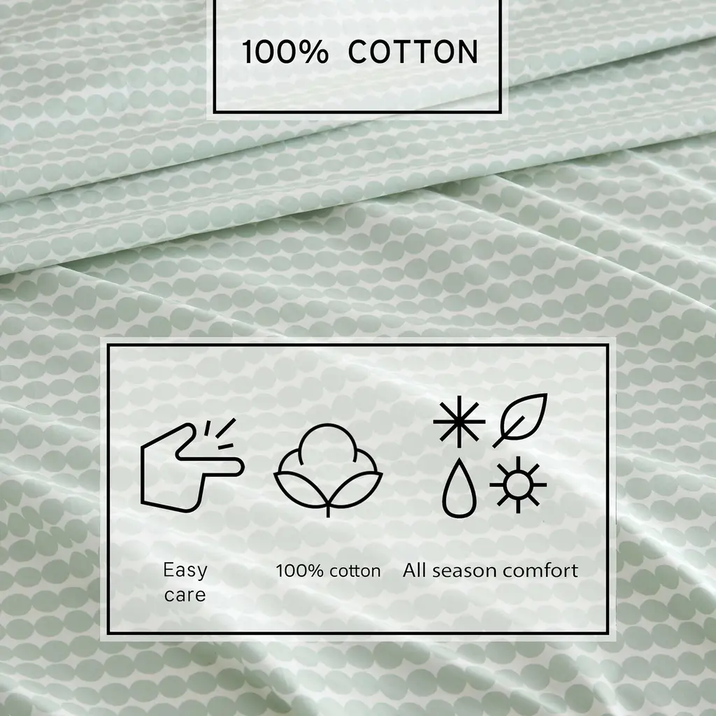 Bring fresh style and lasting comfort to your bedroom with the iconic pattern of the Pikku Rasymatto percale sheet set by Marimekko. The crisp cotton fabric gets softer after each wash; its durable yarns are woven in a one-over, one-under pattern which leaves room in the weave for air to pass through.