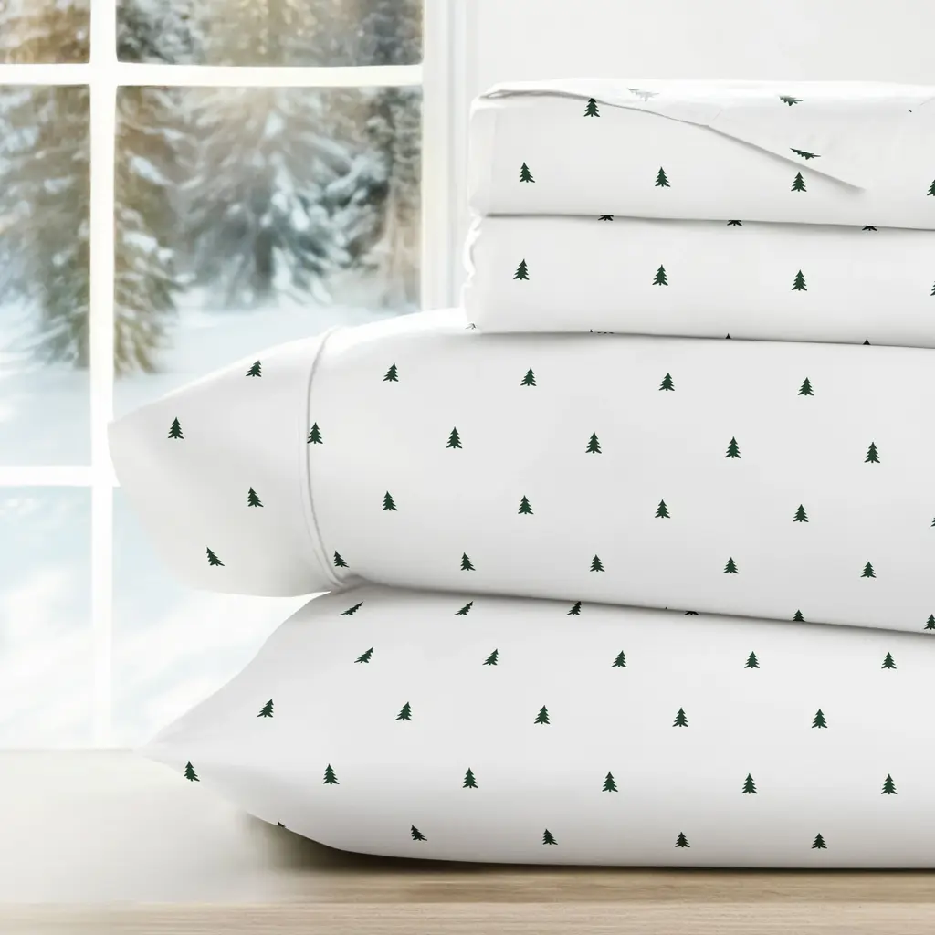Pine Tree Patterned 4-Piece Sheet Set