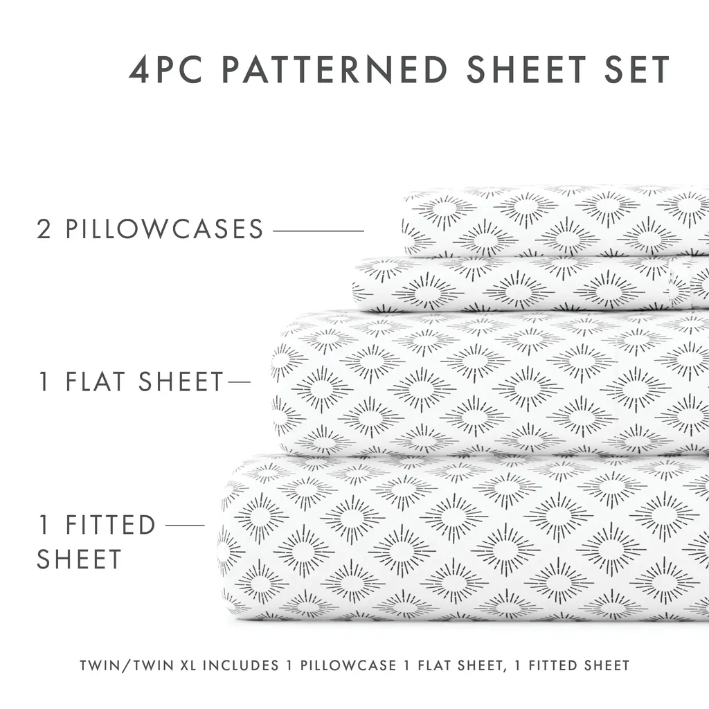 Our double-brushed patterned microfiber sheet set is super soft to the touch and wrinkle-resistant. We use premium yarns that are twice as durable as cotton, which means less risk of rips and wear. Naturally hypoallergenic, our sheets are ideal for sensitive skin and those with allergies. Available in a variety of unique designer prints and patterns, including florals, geometrics, and stripes, making it the perfect new addition to your room!