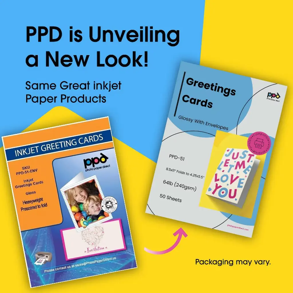 Ppd Glossy Printable Greeting Cards 8.5x11" 50 Sheets 260 Gsm For Inkjet Printers