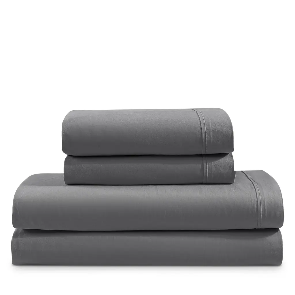 The Calvin Klein Rekoop sheet collection adds a soft and luxurious feel to any bed. Prewashed for a soft hand feel, each set is crafted from a sateen blend for a refined sheen and a clean, modern look.
