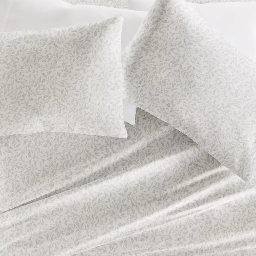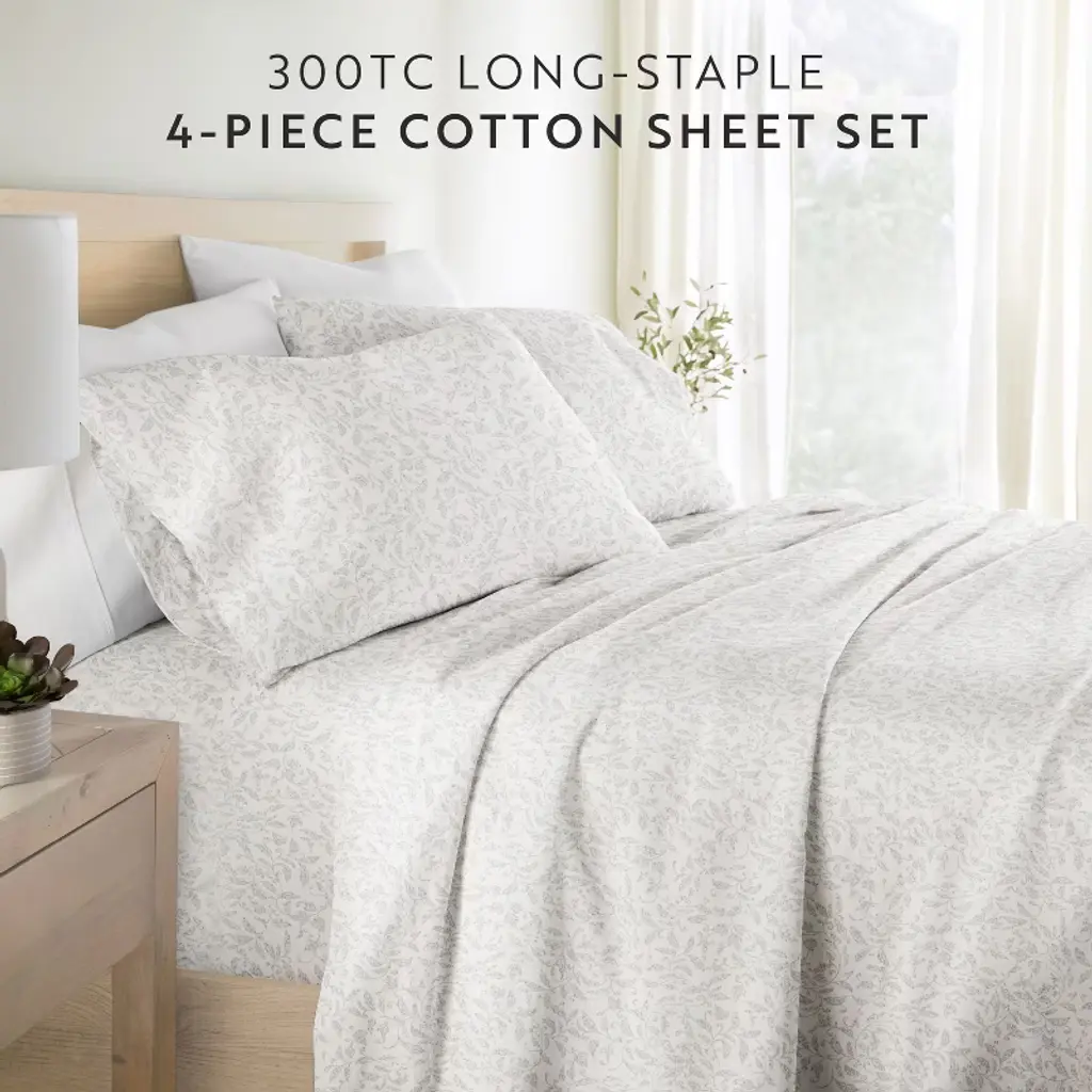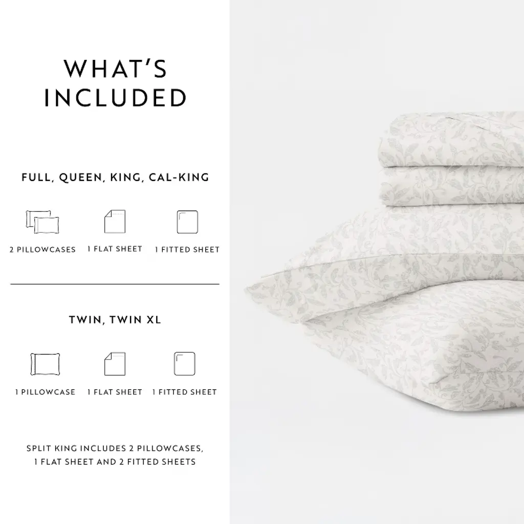 Romantic Vines Cotton Sheet Set – 300 Tc Sateen Cotton, Machine Washable, Soft & Stylish Pattern - Becky Cameron, Eucalyptus, Queen