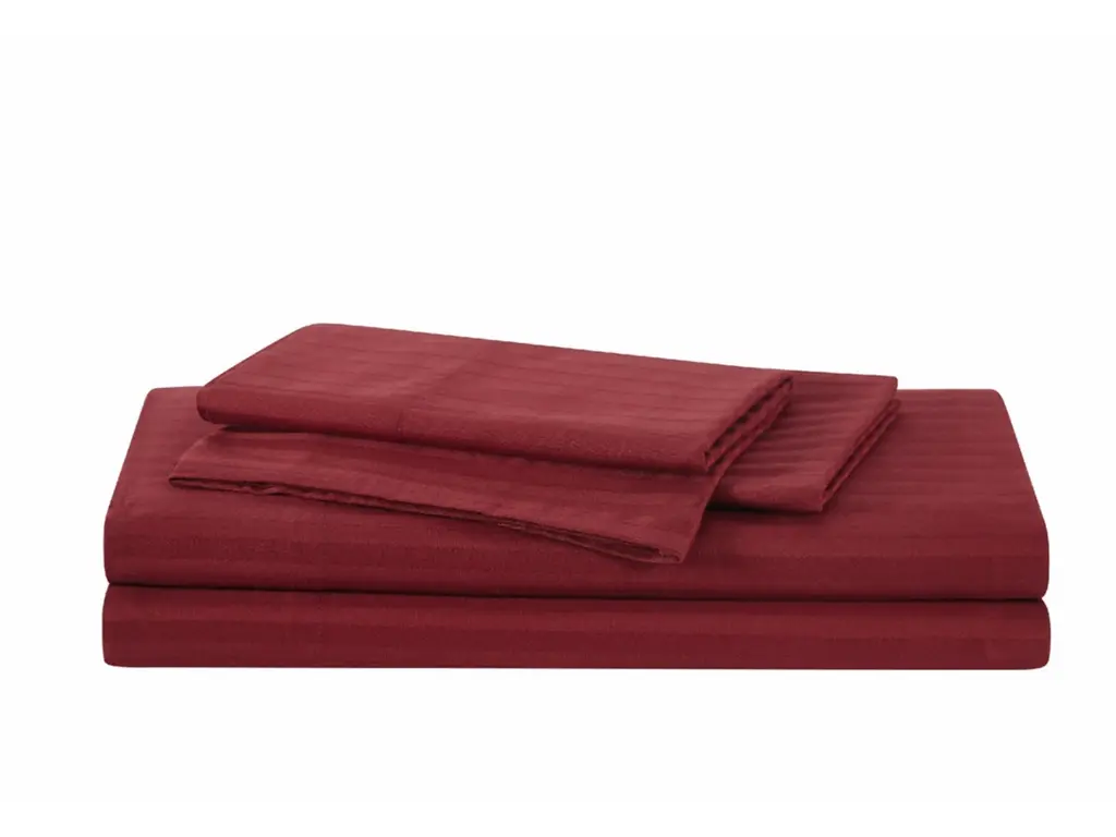 Experience the refined comfort and timeless elegance of the Royal Velvet Signature Dobby Stripe 100% Cotton Sheet Set, where luxury meets everyday living. Transform your bedroom into a sanctuary of luxury with these sheets. Designed to provide a royal look and a sumptuous feel, this bedding set features a sophisticated woven stripe pattern that adds a touch of elegance to any decor. The collection is available in a variety of rich solid colors, allowing you to effortlessly coordinate with your existing bedroom design. Crafted from 100% cotton with a 250 thread count, these sheets offer a perfect blend of softness and durability. The deep pocket fitted sheet is designed to accommodate mattresses up to 18 inches thick, with elastic on all four sides to ensure a secure, snug fit throughout the night. For over 60 years, Royal Velvet has been synonymous with modern classic designs that inspire creativity and self-expression. Known as the color authority, Royal Velvet delivers high-quality bedding that envelops you in comfort and style, making it the trusted brand to complete your bed in true luxury. Certified by OEKO-TEX Standard 100, this sheet set is produced with your well-being in mind, free from harmful substances and crafted responsibly.