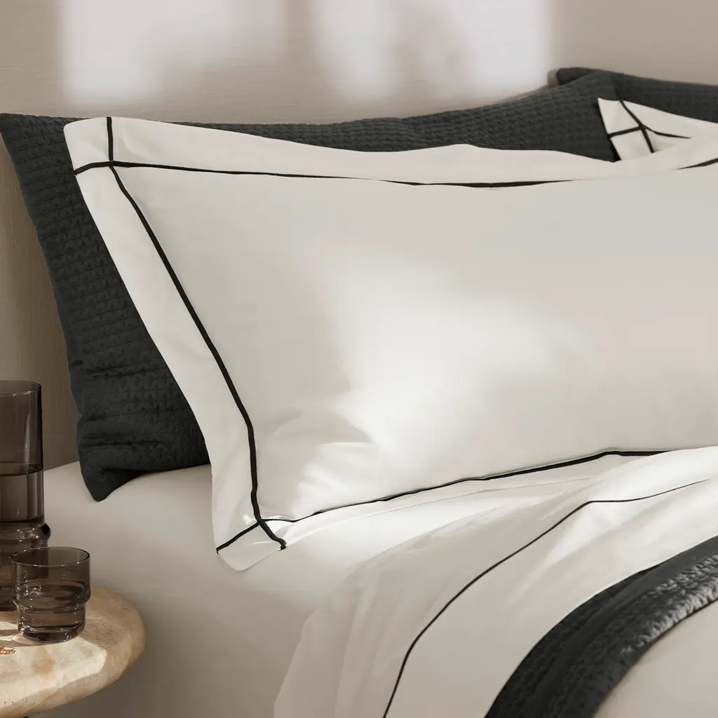 Simple, luxurious, and sure to compliment any bedroom decor, these sheet sets are made with 100% organic cotton for a comfortable night's sleep and feature bold embroidery at the edges for a clean and timeless elegance.