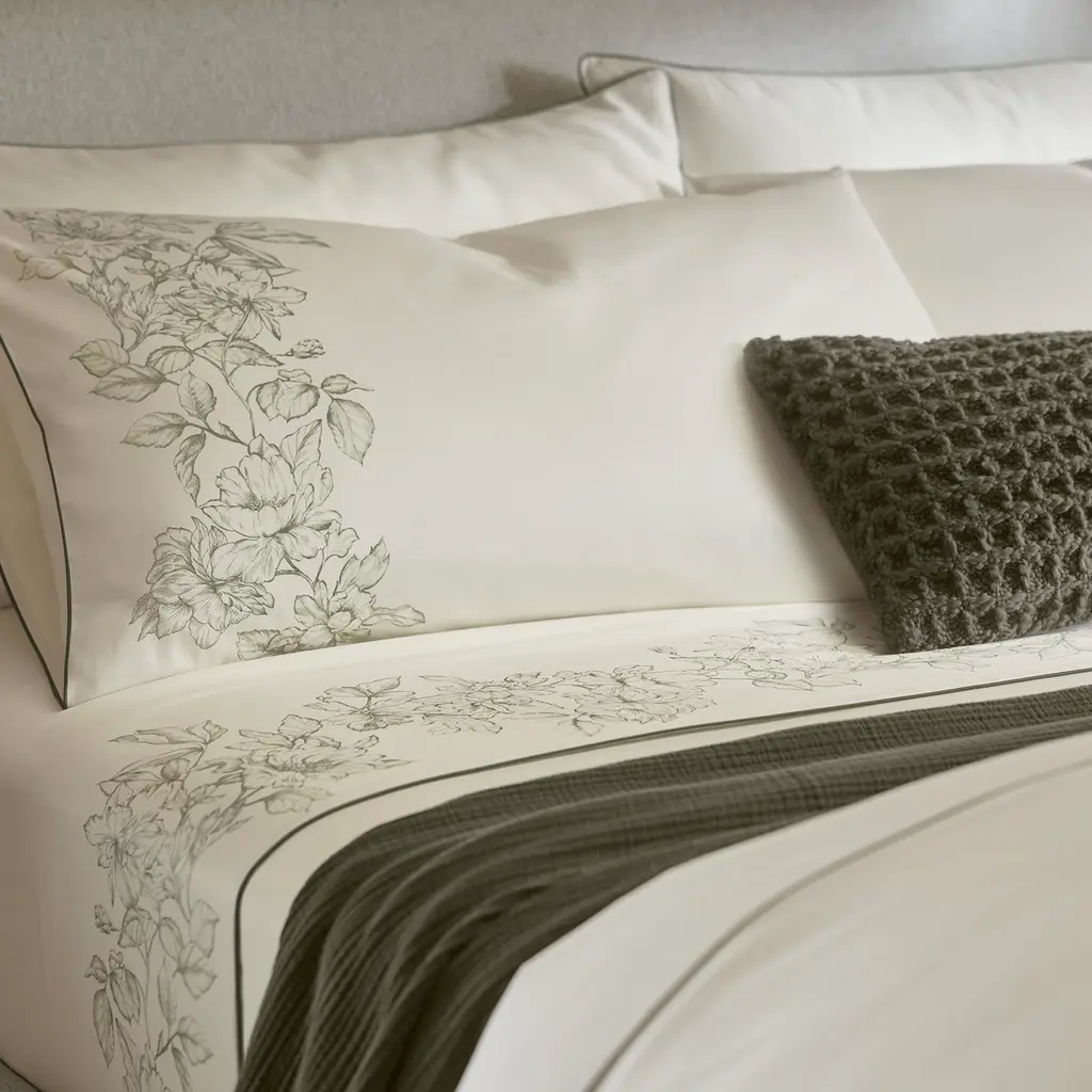 Boll & Branch's bestselling Signature fabric, now with an elegant piped edge. This elevated take on the iconic sheet set pairs the buttery soft feel of long-staple cotton with a refined, tailored finish. Thoughtfully embellished yet endlessly versatile, it offers a polished look in the fabric that gets softer with every wash. To capture the artistry of the original hand illustration, the peony motif is meticulously printed to create a seamless display of flowing florals. Each bloom is rendered with subtle variation, adding depth and movement that exudes elegance from every angle