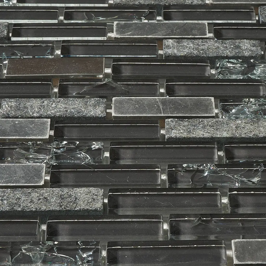 Silver Lead Random Brick Mosaic Tile - 5 Sheets (5.00 Sf) - Black