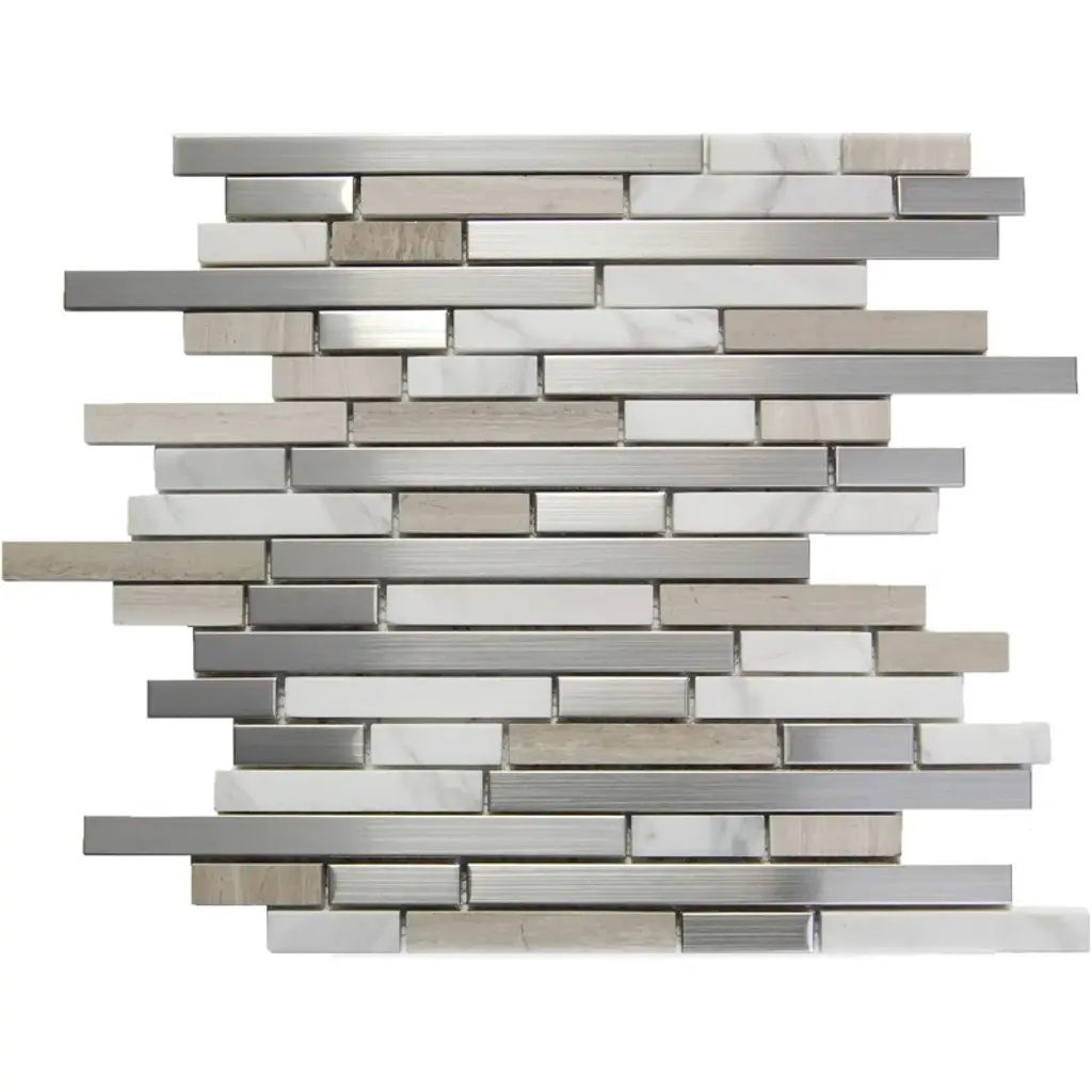 Silver Lead Random Brick Mosaic tile is a decorative tile product made from natural stone. It features a brick-like pattern with a size of 5/8 inch by 2 inches per tile. The mosaic is designed to provide a rustic and natural feel to any space and is suitable for use as a backsplash, accent wall or flooring in both residential and commercial settings. The material offers unique variations in color and texture, adding character and interest to any design.What's included?Product Details Sample Details