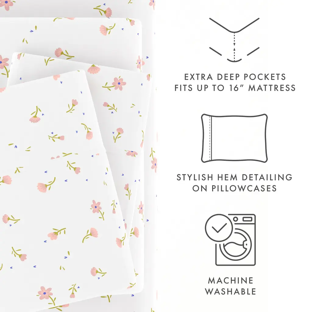 Soft Floral Pattern 4-Piece Sheet Set