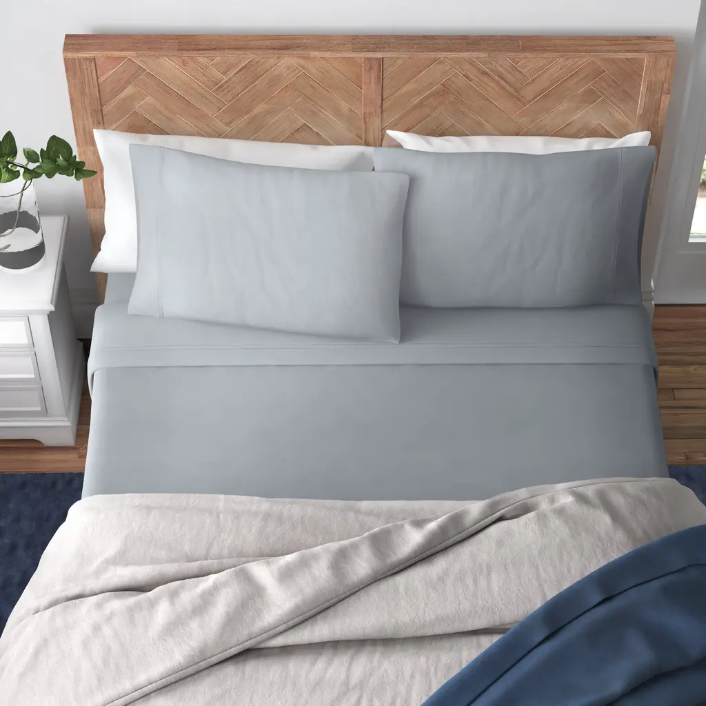 Add serene style to any bedroom with the Solid Blue sheet set from Vera Wang, featuring a smooth sateen finish and a crisp design.