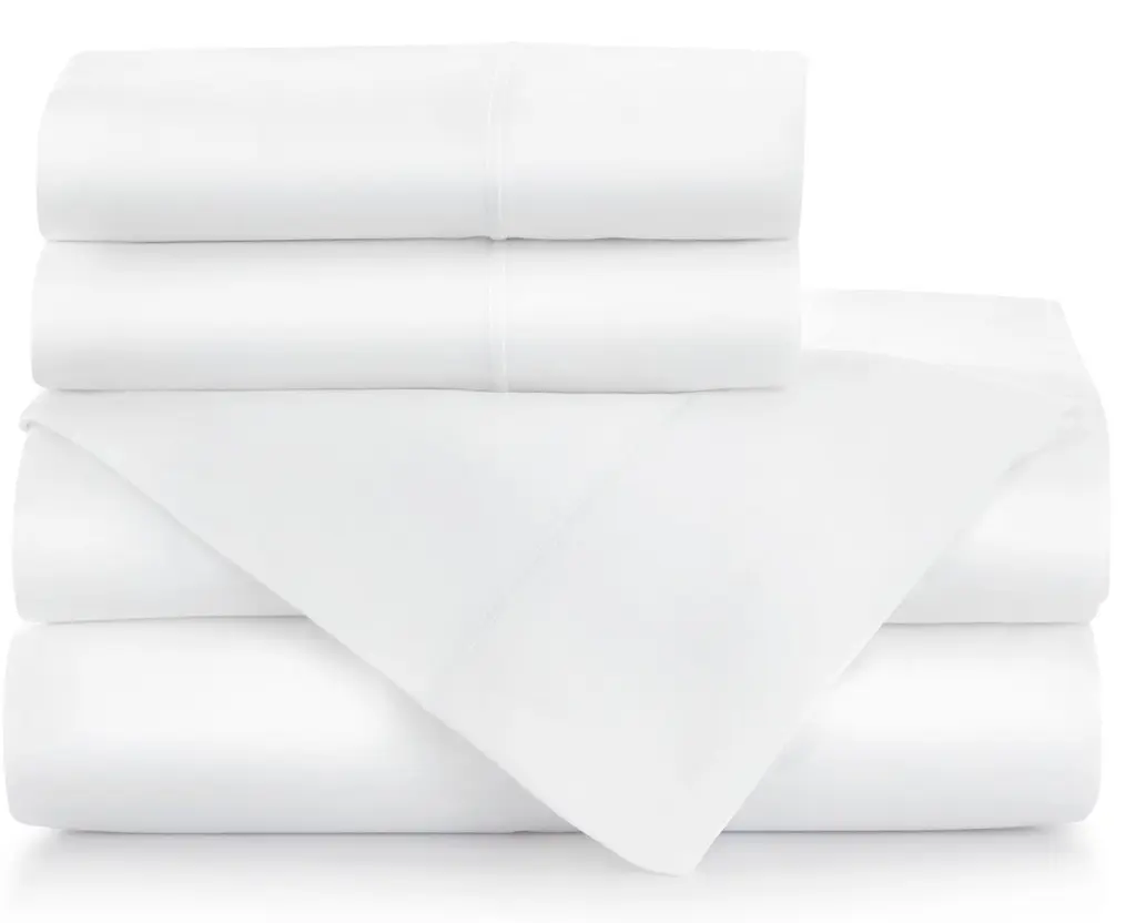Bedsheets don't get much more luxurious than this. The fitted sheet, flat sheet, and two pillowcases are crafted of cotton with an extra-long staple for maximum softness and durability; what's more, the fabric has a sumptuous 420 thread count. The flat sheet and pillowcases have a four-inch cuff accented with a single-row satin-stitch embroidery. With a 17-inch gusset, the fitted sheet can accommodate mattresses as thick as 21 inches.