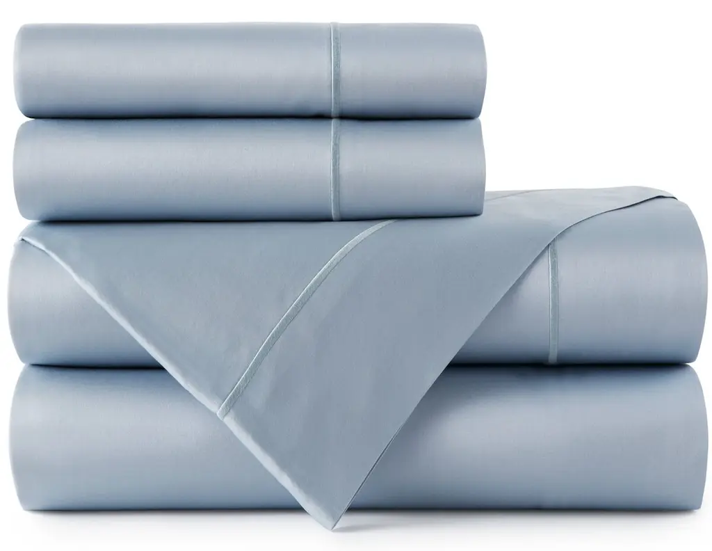 Bedsheets don't get much more luxurious than this. The fitted sheet, flat sheet, and two pillowcases are crafted of cotton with an extra-long staple for maximum softness and durability; what's more, the fabric has a sumptuous 420 thread count. The flat sheet and pillowcases have a four-inch cuff accented with a single-row satin-stitch embroidery. With a 17-inch gusset, the fitted sheet can accommodate mattresses as thick as 21 inches.