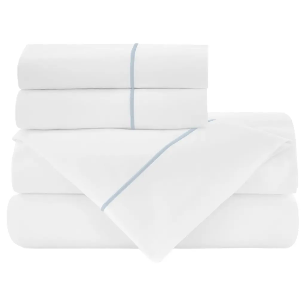 Bedsheets don't get much more luxurious than this. The fitted sheet, flat sheet, and two pillowcases are crafted of cotton with an extra-long staple for maximum softness and durability; what's more, the fabric has a sumptuous 420 thread count. The flat sheet and pillowcases have a four-inch cuff accented with a single-row satin-stitch embroidery. With a 17-inch gusset, the fitted sheet can accommodate mattresses as thick as 21 inches.