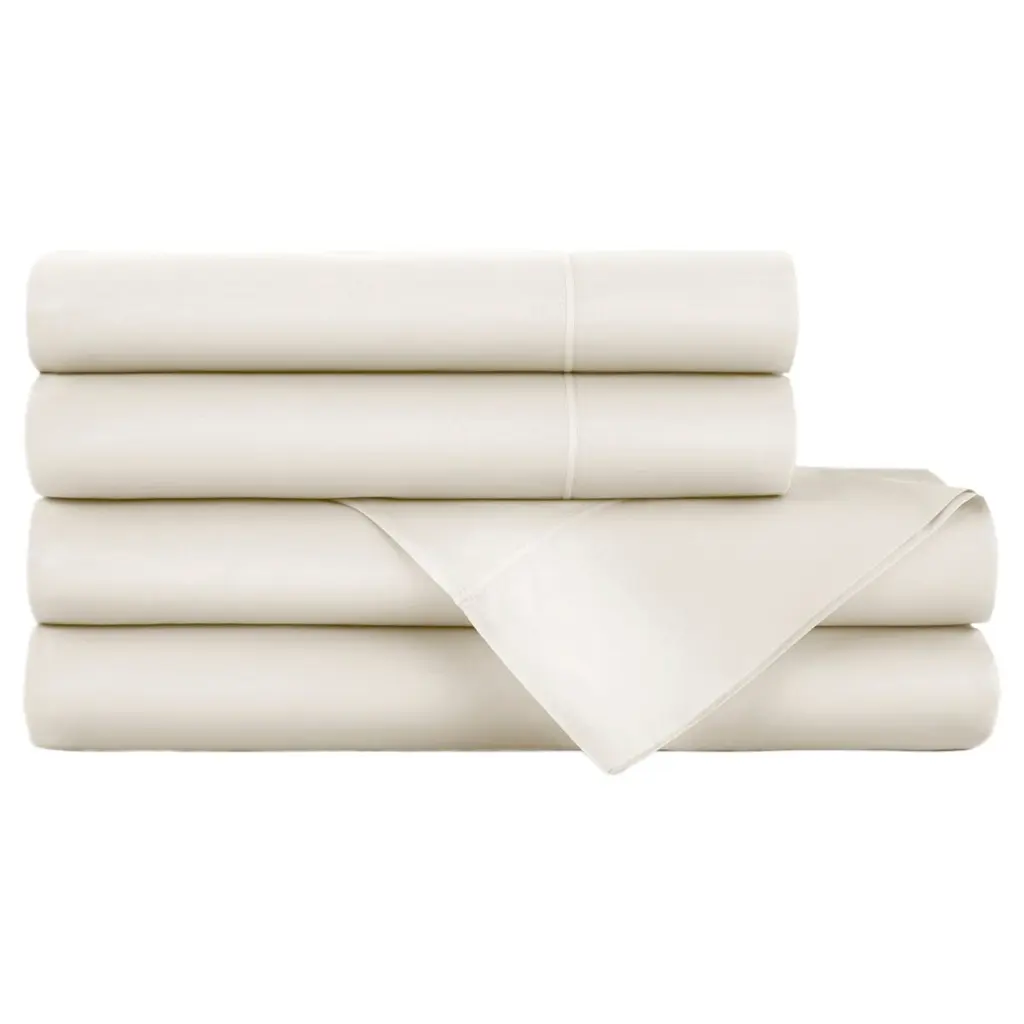 Bedsheets don't get much more luxurious than this. The fitted sheet, flat sheet, and two pillowcases are crafted of cotton with an extra-long staple for maximum softness and durability; what's more, the fabric has a sumptuous 420 thread count. The flat sheet and pillowcases have a four-inch cuff accented with a single-row satin-stitch embroidery. With a 17-inch gusset, the fitted sheet can accommodate mattresses as thick as 21 inches.