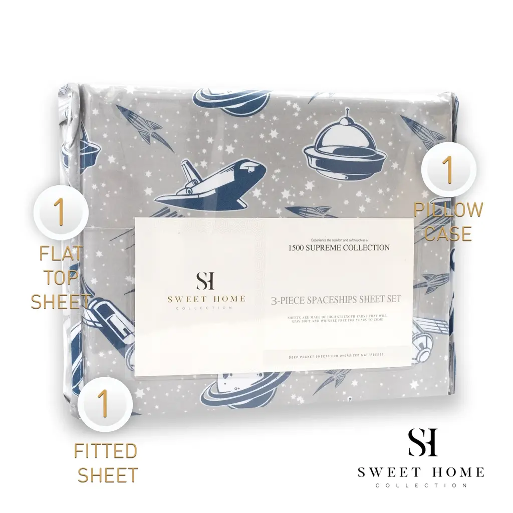 Spaceships Sheet Set By Sweet Home Collection - Multi - Twin - 3 Piece