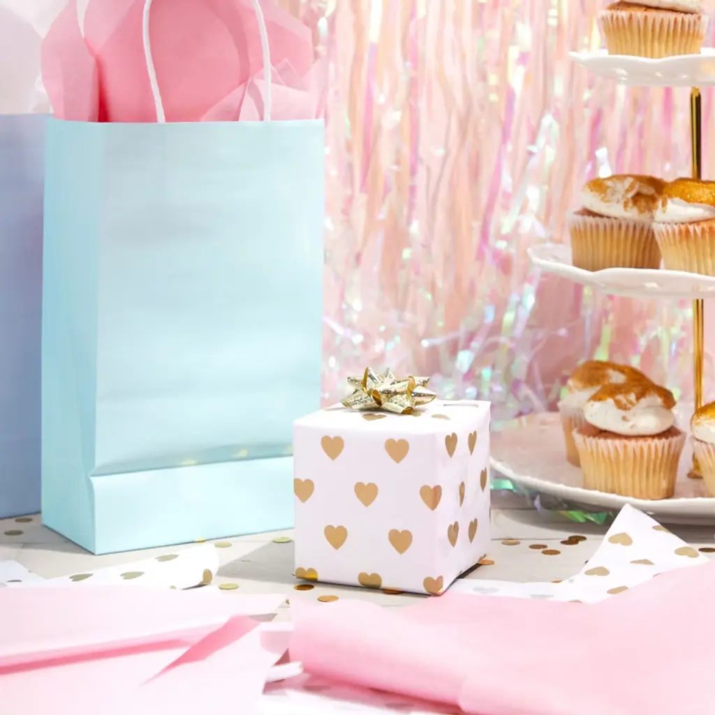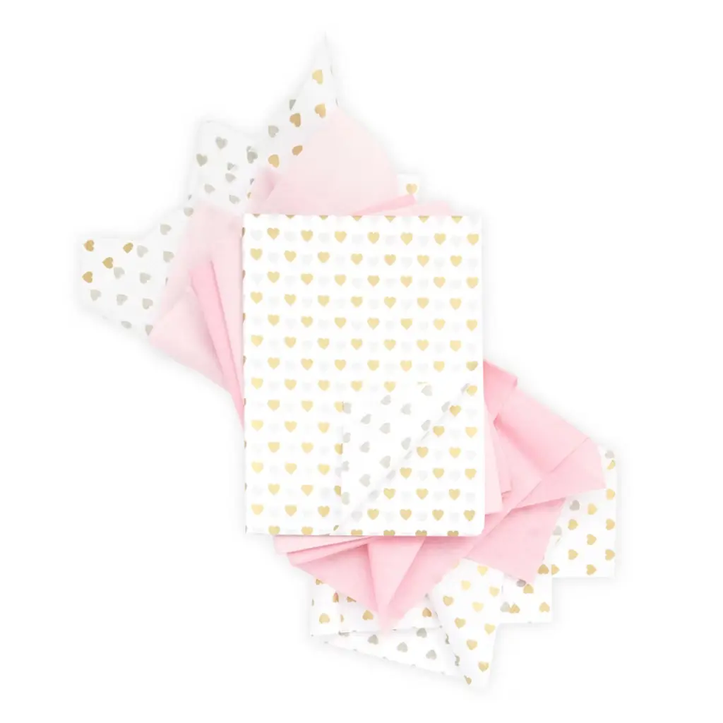 Use this set of 60 pink, white, and gold tissue paper for gift bags, crafts, party decorations, or small business packaging. The colorful tissue paper comes with 3 assorted designs including white with gold hearts and shades of pink, ideal for an upcoming girls baby shower, birthday, or engagement party. Each decorative tissue paper sheet measures 26 x 20 inches but can easily be cut, folded, and shaped to fit your gift-wrapping needs.