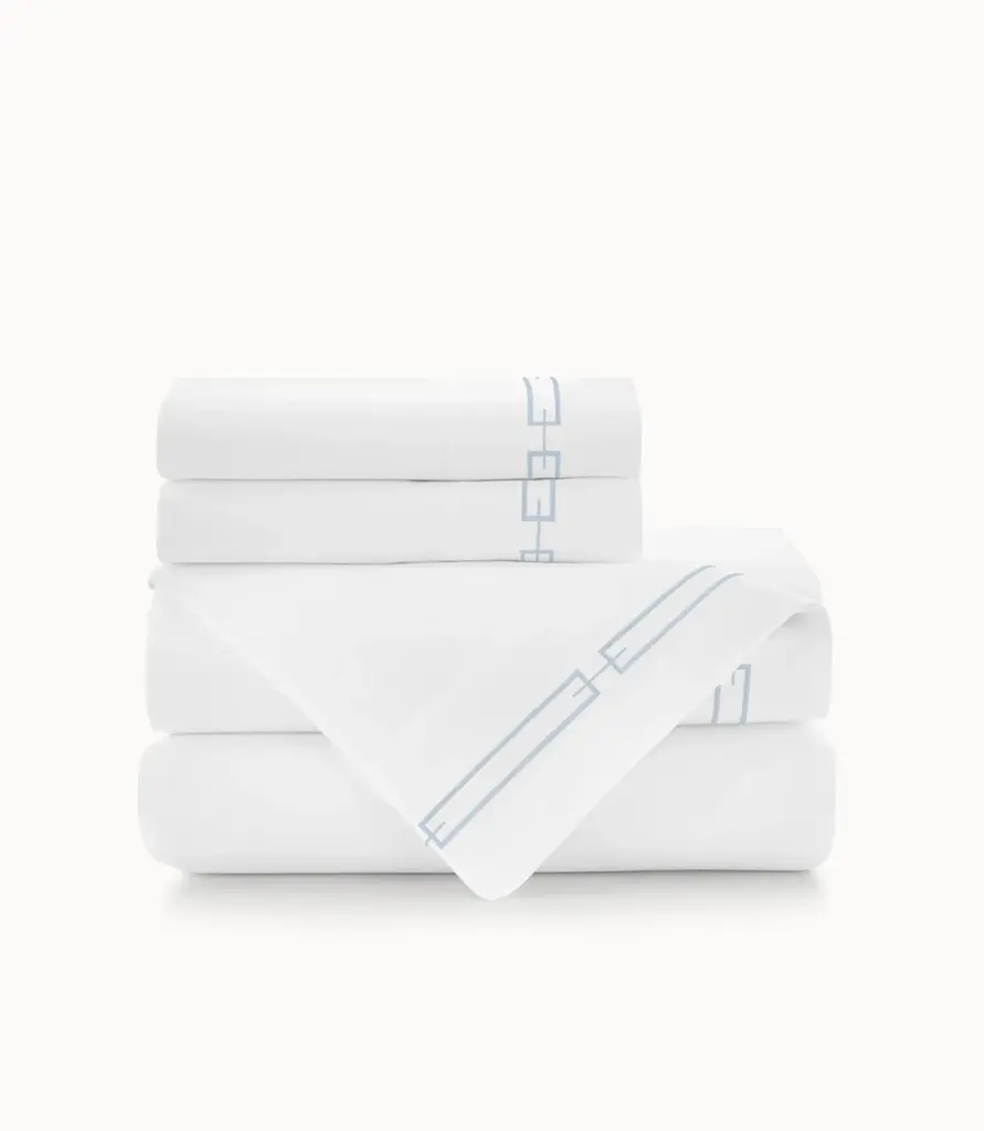 For the traditional or the modern home, Stanza complements a variety of styles. Stanza is a contemporary geometric link embroidery design that adds color to your bed in a perfectly tailored way.
